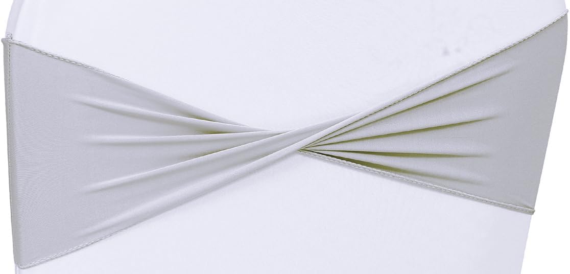 MDS Pack of 150 Spandex Chair Sashes Bows Elastic Stretch Dining Chair Bands Ties Without Slider Buckle Universal fits for Wedding Baby Shower Birthday Party Banquet Event Decoration - Light Silver