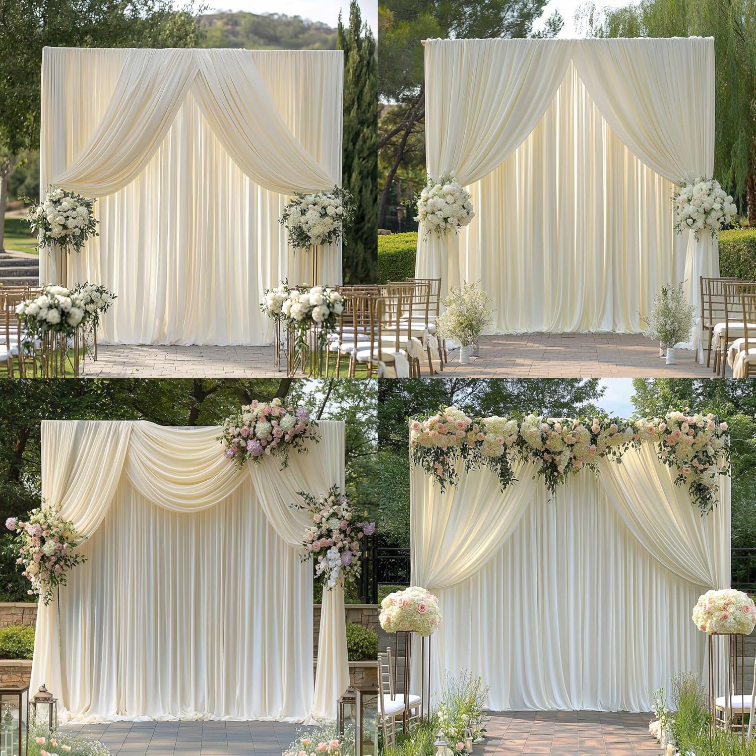 - Caring Instructions:Ivory wedding drapes for wedding can be hand wash or machine wash. You can add some flowers or greenery, you can also use it with twinkle lights to make your polyester backdrop for a gorgeous look!