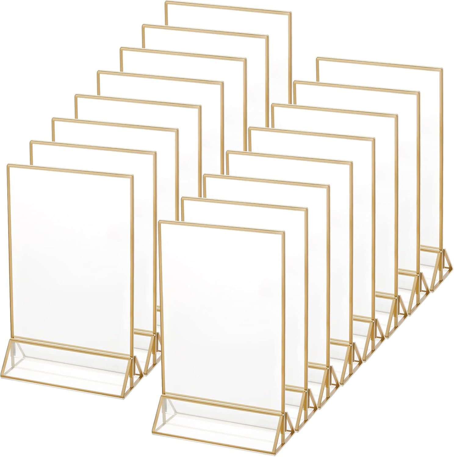 16 Pieces Gold Rimmed Clear Acrylic Table Sign Holders, Double Sided Frame with Gold Border and Vertical Stand for Wedding Table Number, Restaurant Sign, Photo Display, Menu Holder (4 x 6 Inch)
