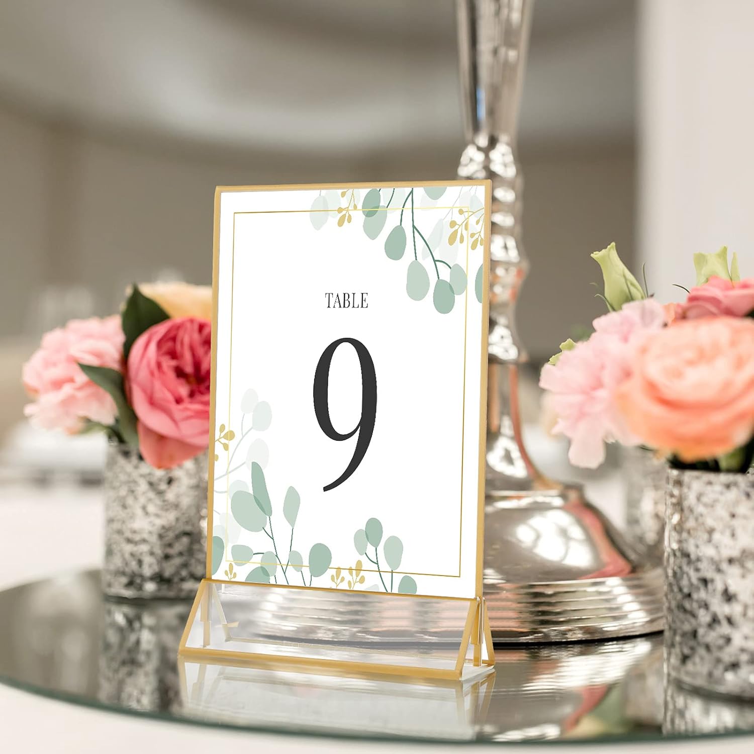 - Stylish design: the golden frames are made of crystal clear acrylic, which are much more transparent than other products; You can show a photo on each side or hold a table number card on the wedding table; They will be integrated into your wedding and party and become important decorations
