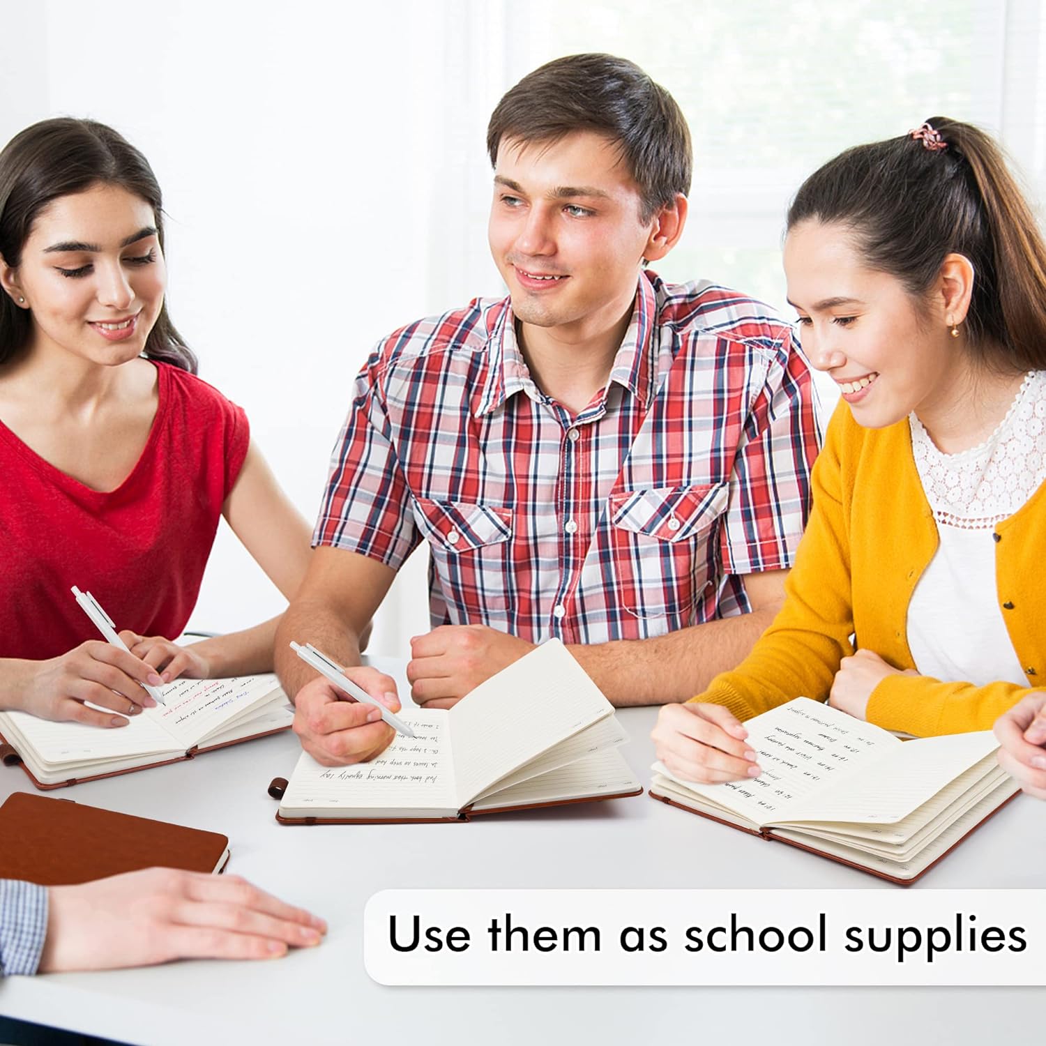 - Feela 5 Pack Classic Ruled Notebooks contains 5 classic brown ruled sturdy cover notebooks and 5 Black Retractable Pens. Each of the notebooks measures 8.3” x 5.1”, which is perfect to carry and easily held by young girls and boys. These black cute pens are customized to be placed in the pen holder, which is pretty convenient.