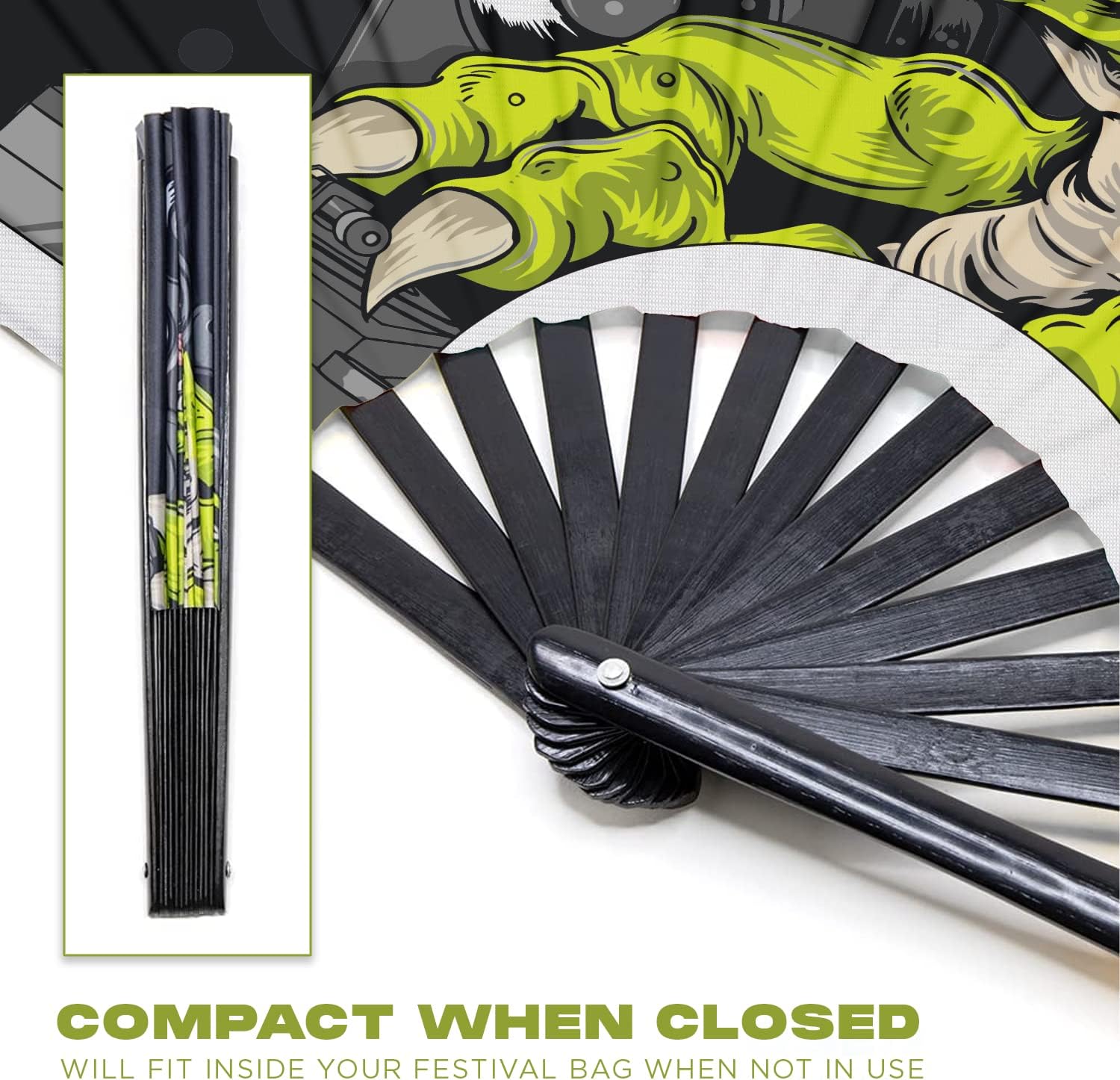 GloFX Folding Fan - DJ Dino - Large Rave Clack Folding Hand Fan for Men/Women - for EDM, Music Festival, Club, Event, Party, Dance, Performance, Decoration, Gift