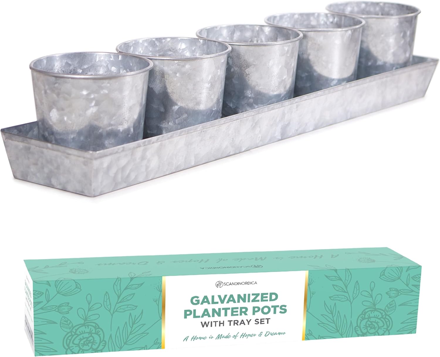 - STYLISH FARMHOUSE DECOR β This stylish and unique set of 5 galvanized garden pots combines practical design and superior functionality. Herb planters for indoor plants is a convenient addition to any chef's or home cook's kitchen