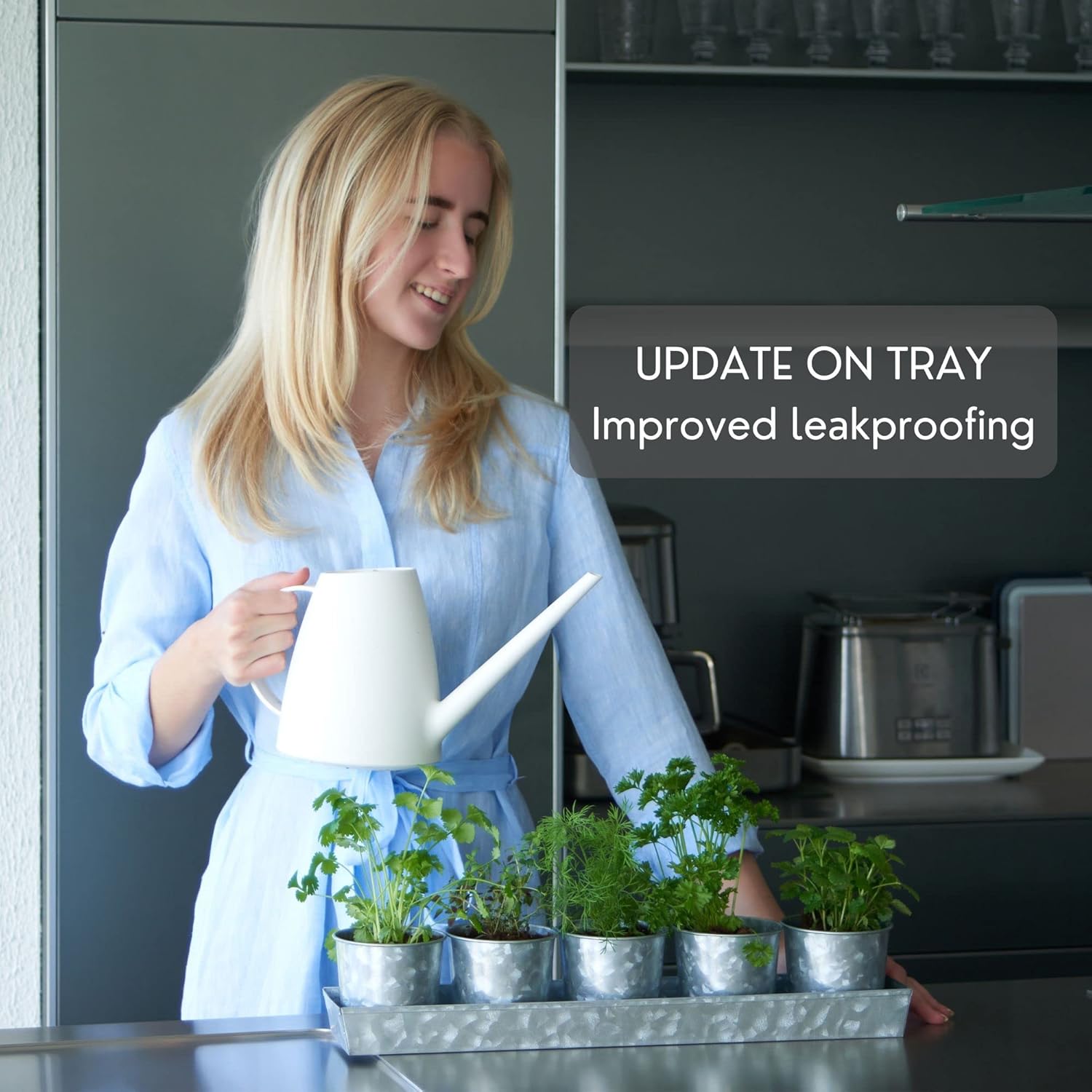 - STURDY AND STRONG - Made from the high quality galvanized steel. The rectangular tray keeps the herbs pots attractively corralled and easily transportable. Window sill herb garden tray dimensions: 19.5in L x 1.6in H x 3.5in W β Pots: 3.5β high, 3.8β top width, 3.1β bottom width