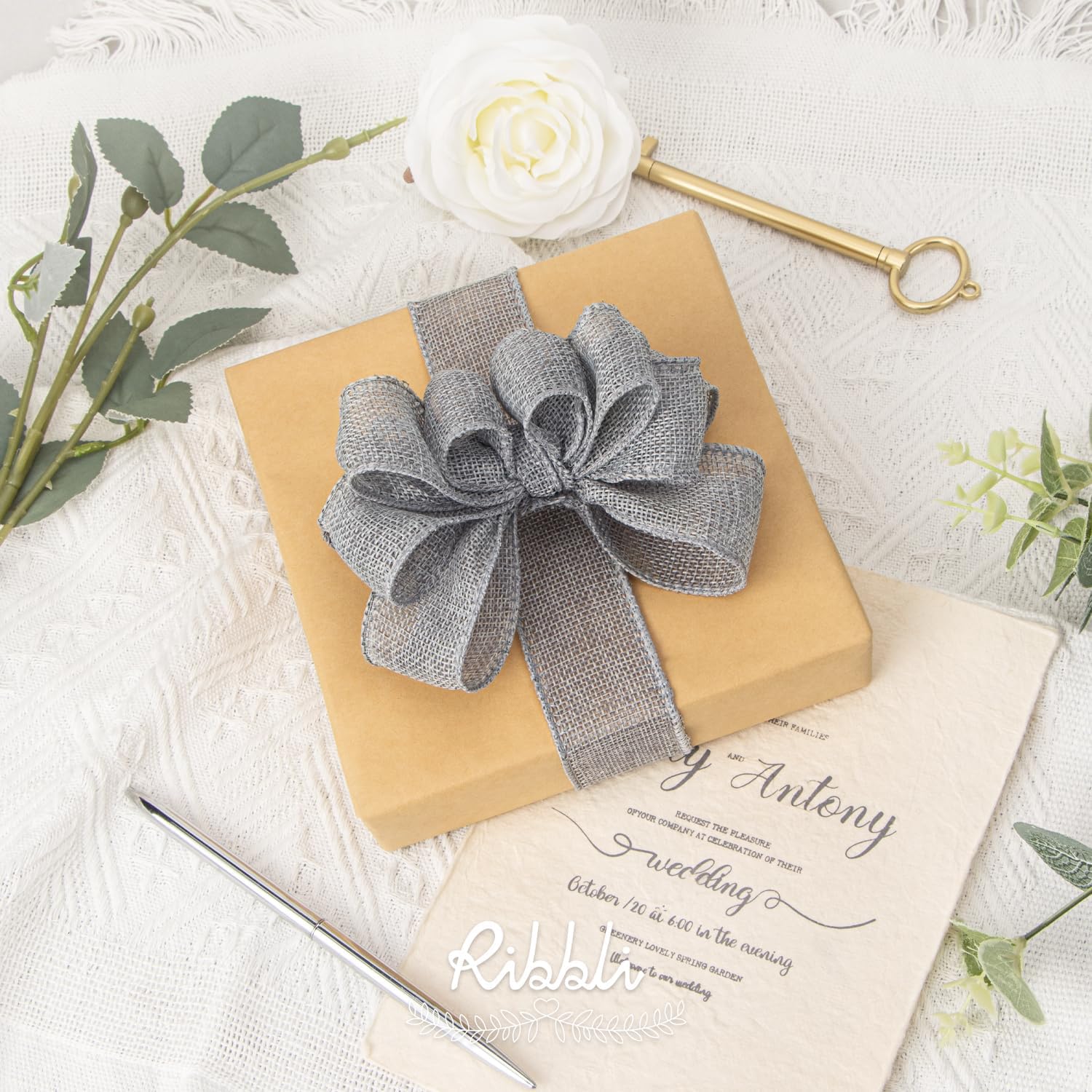 Ribbli Burlap Wired Burlap,1-1/2 Inch x 10 Yard,Silver