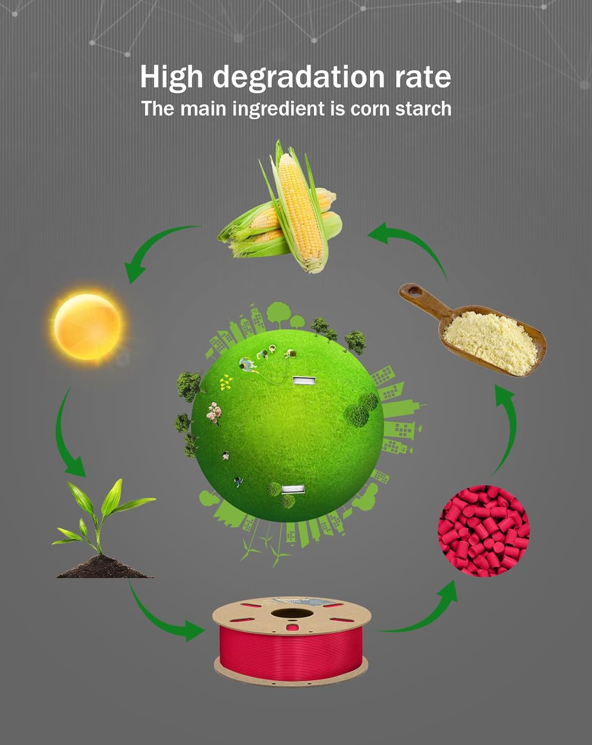 - UPGRADED CARDBOARD SPOOL: The upgraded spool is made of compressed cardboard along with new version info sticker which aim for better protection of the environment and convenience of sorting and recycling; The filaments remain the same formula and quality