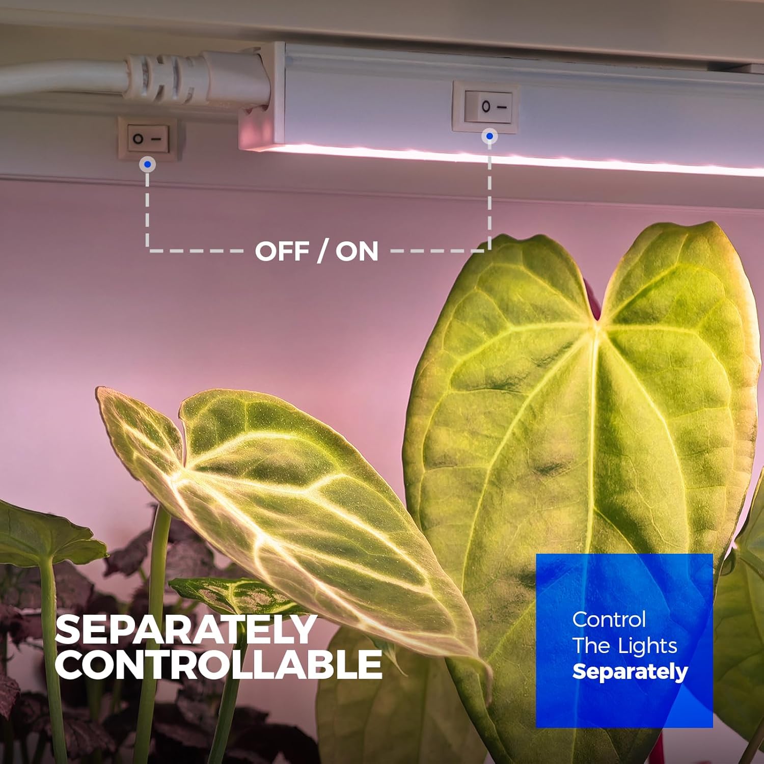 - Separately Controllable: Each grow lights have on off switch on the surface of housing, controlling the lights separately or together according PPFD that plants need