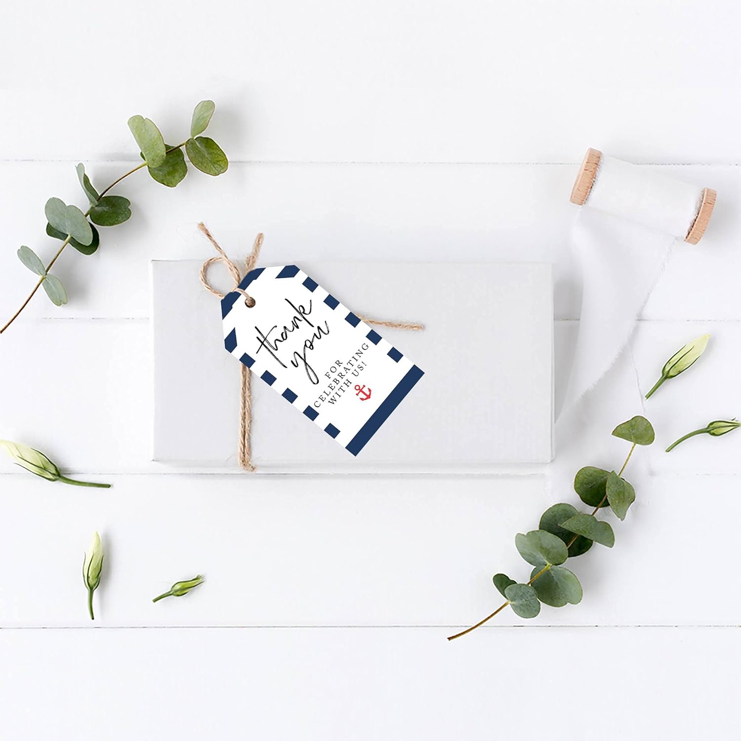 Andaz Press 100-Pack Thank You for Celebrating with Us Favor Tags Nautical Beach Cardstock Gift Tags with Bakers Twine for Wedding Baby Shower Bridal Shower Birthday Party Favors 2 x 3.75-Inches