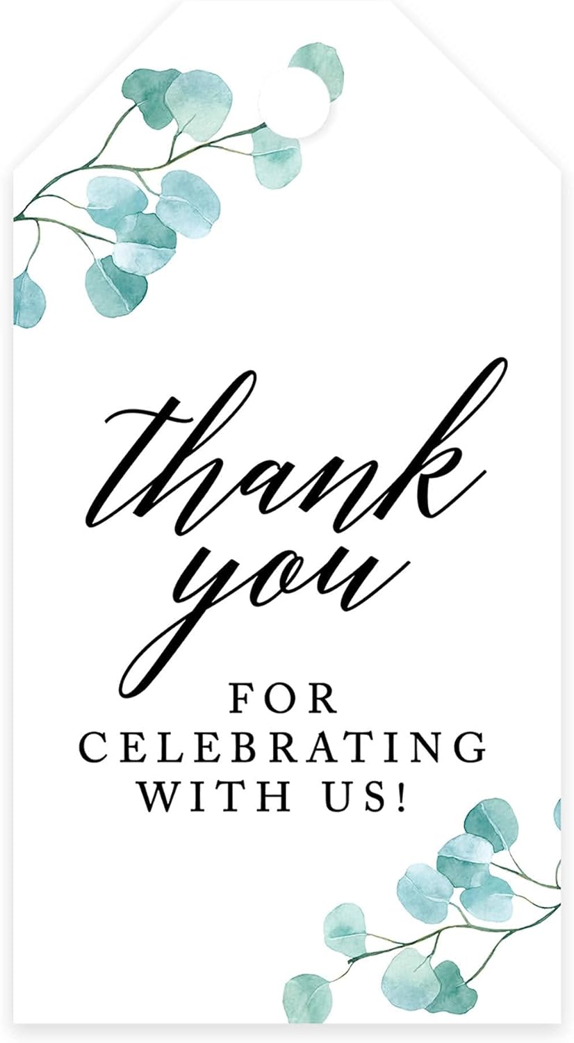 - FOR OTHER GIFT WRAP TAGS: Giving a thank you gift to those that attended your party is a memorable touch to celebrate your birthday, anniversary, baby shower, wedding, bridal shower, or other special events. Make it more personal with party favor tags that say, "Thank you for celebrating with us". These party tags come with Bakers twine and in 35 unique designs that can match your party theme perfectly. Show guests just how thankful you are they celebrated your special event.