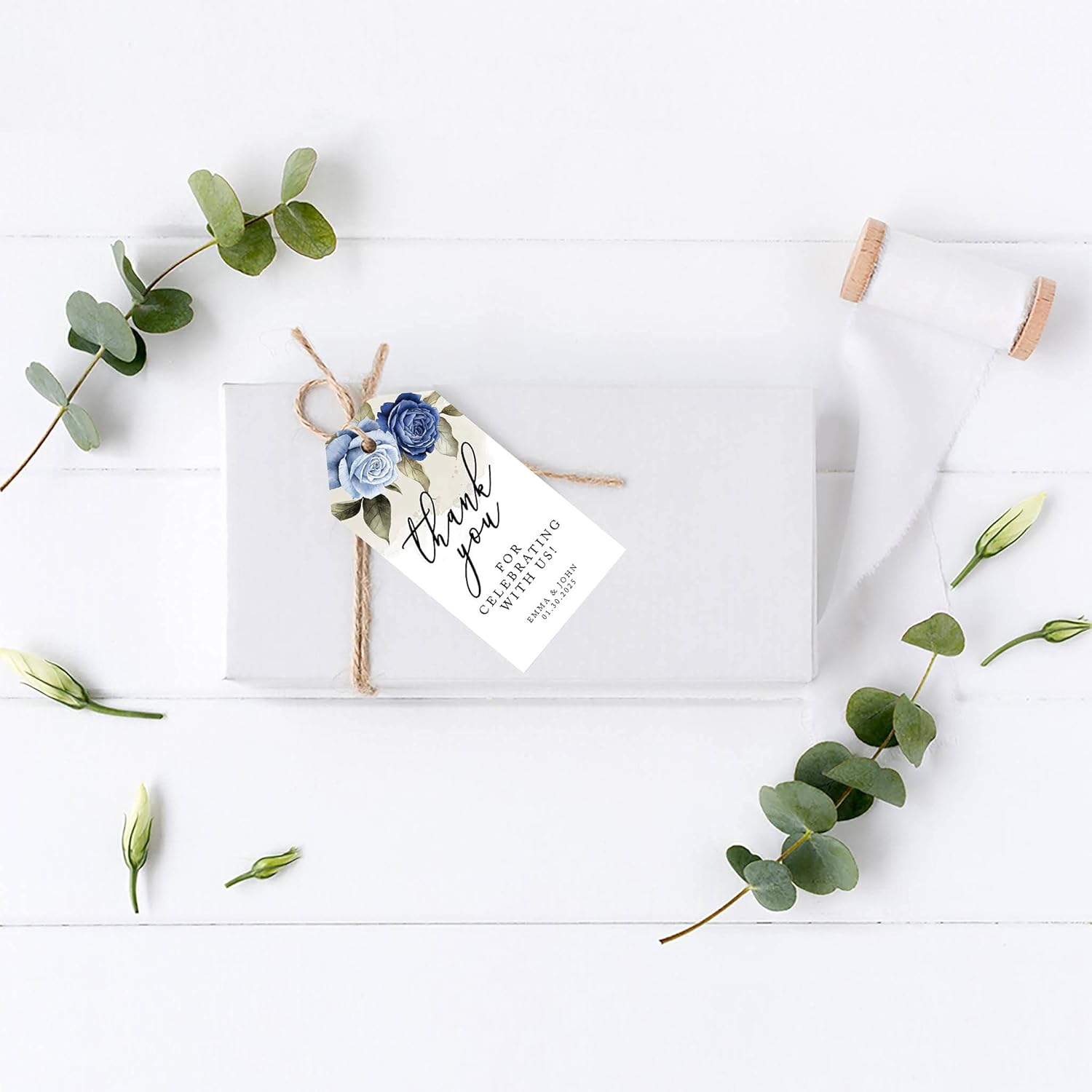 - FOR OTHER GIFT WRAP TAGS: Customize your event with personalized wedding tags, including welcome tags and customized gift tags. Make each gesture memorable with party favor tags expressing "Thank you for celebrating with us.β Choose from 35 unique designs to match your wedding theme perfectly. Beyond the wedding day, use these versatile thank you favor tags for bridal showers, engagement parties as well as personalized gift tags for wedding favors and wedding welcome bag tags for hotel guests.