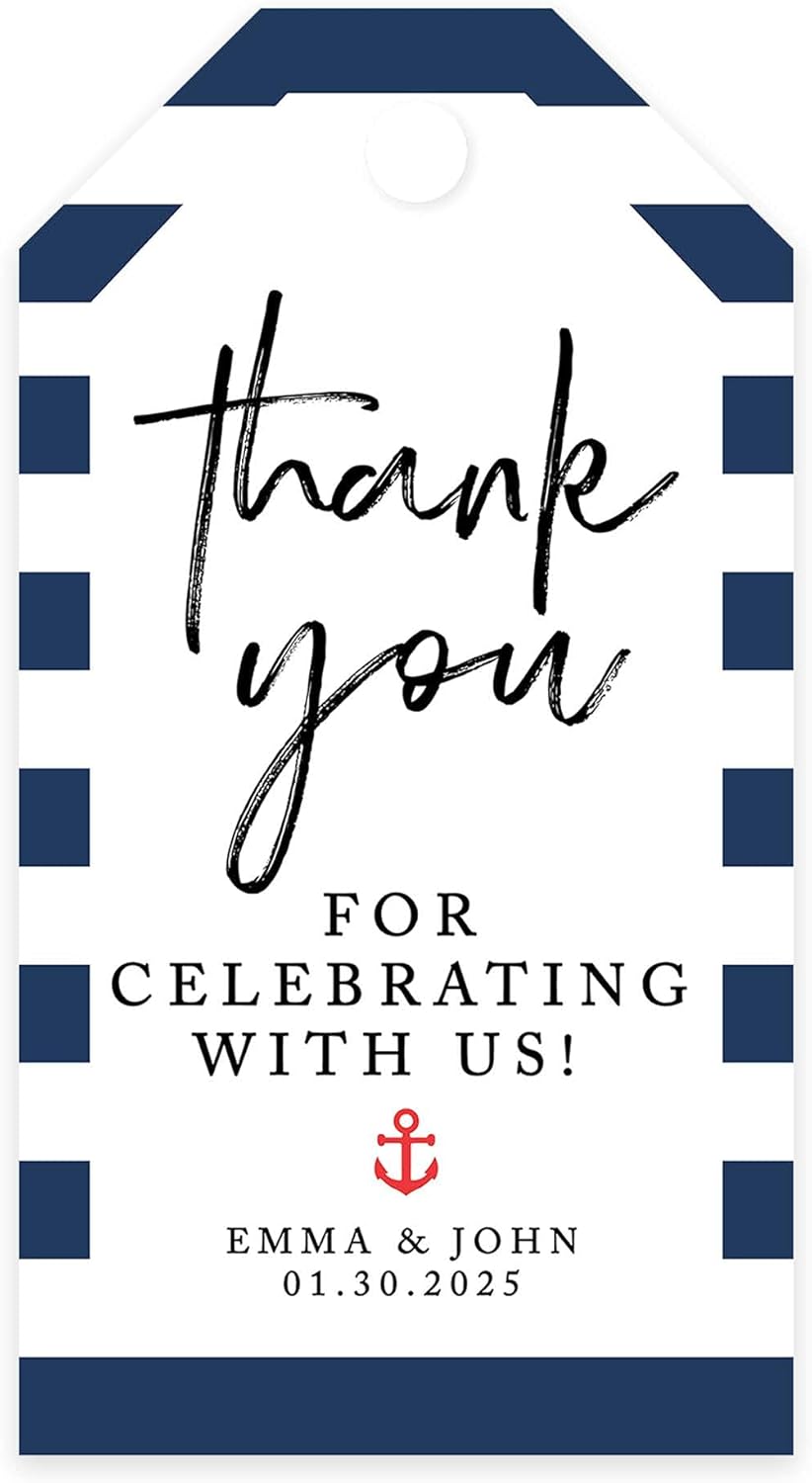 - FOR OTHER GIFT WRAP TAGS: Customize your event with personalized wedding tags, including welcome tags and customized gift tags. Make each gesture memorable with party favor tags expressing "Thank you for celebrating with us.β Choose from 35 unique designs to match your wedding theme perfectly. Beyond the wedding day, use these versatile thank you favor tags for bridal showers, engagement parties as well as personalized gift tags for wedding favors and wedding welcome bag tags for hotel guests.