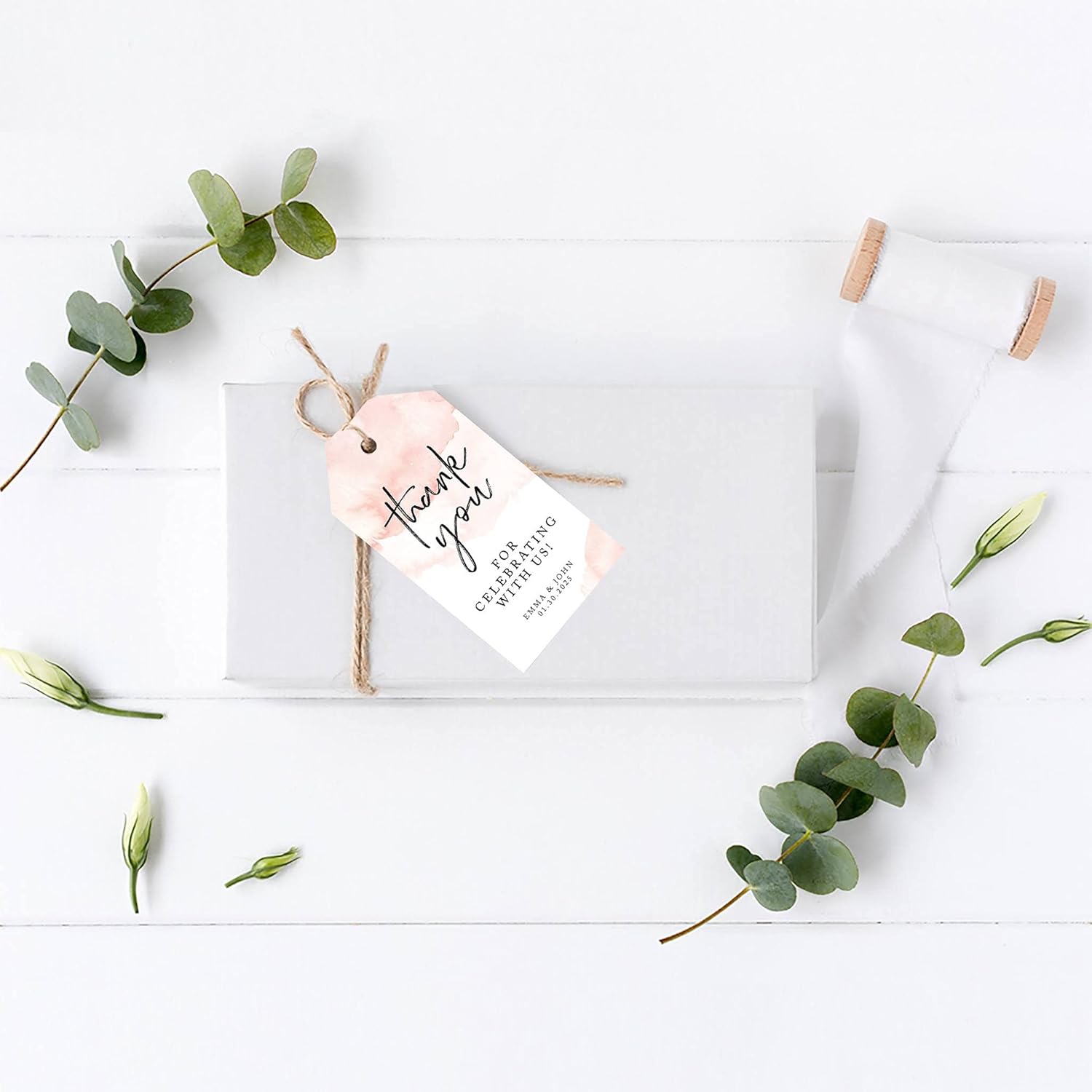 - FOR OTHER GIFT WRAP TAGS: Customize your event with personalized wedding tags, including welcome tags and customized gift tags. Make each gesture memorable with party favor tags expressing "Thank you for celebrating with us.β Choose from 35 unique designs to match your wedding theme perfectly. Beyond the wedding day, use these versatile thank you favor tags for bridal showers, engagement parties as well as personalized gift tags for wedding favors and wedding welcome bag tags for hotel guests.
