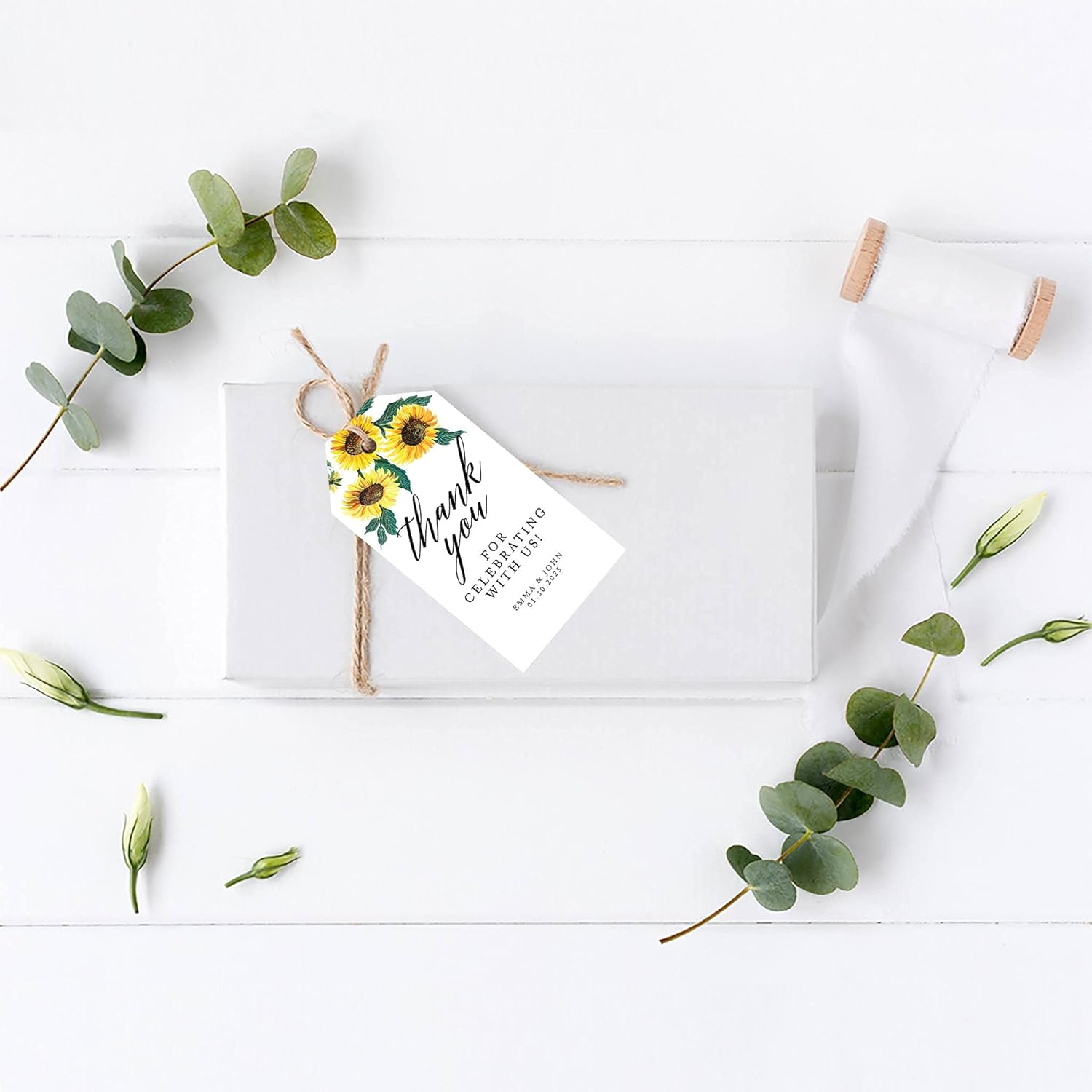 - WEDDING FAVOR TAGS: Create personalized favor tags, enhancing your wedding day celebration. Choose from a variety of designs to match your theme. Express gratitude to your wedding party with custom names on these tags. Sold in packs of 100 with Bakers twine, attach them to each thank-you present for guests to cherish as parting gifts. Include personalized favor tags, "thank you for celebrating with us" tags, wedding thank you tags, and tags for wedding welcome bags for a personalized touch.