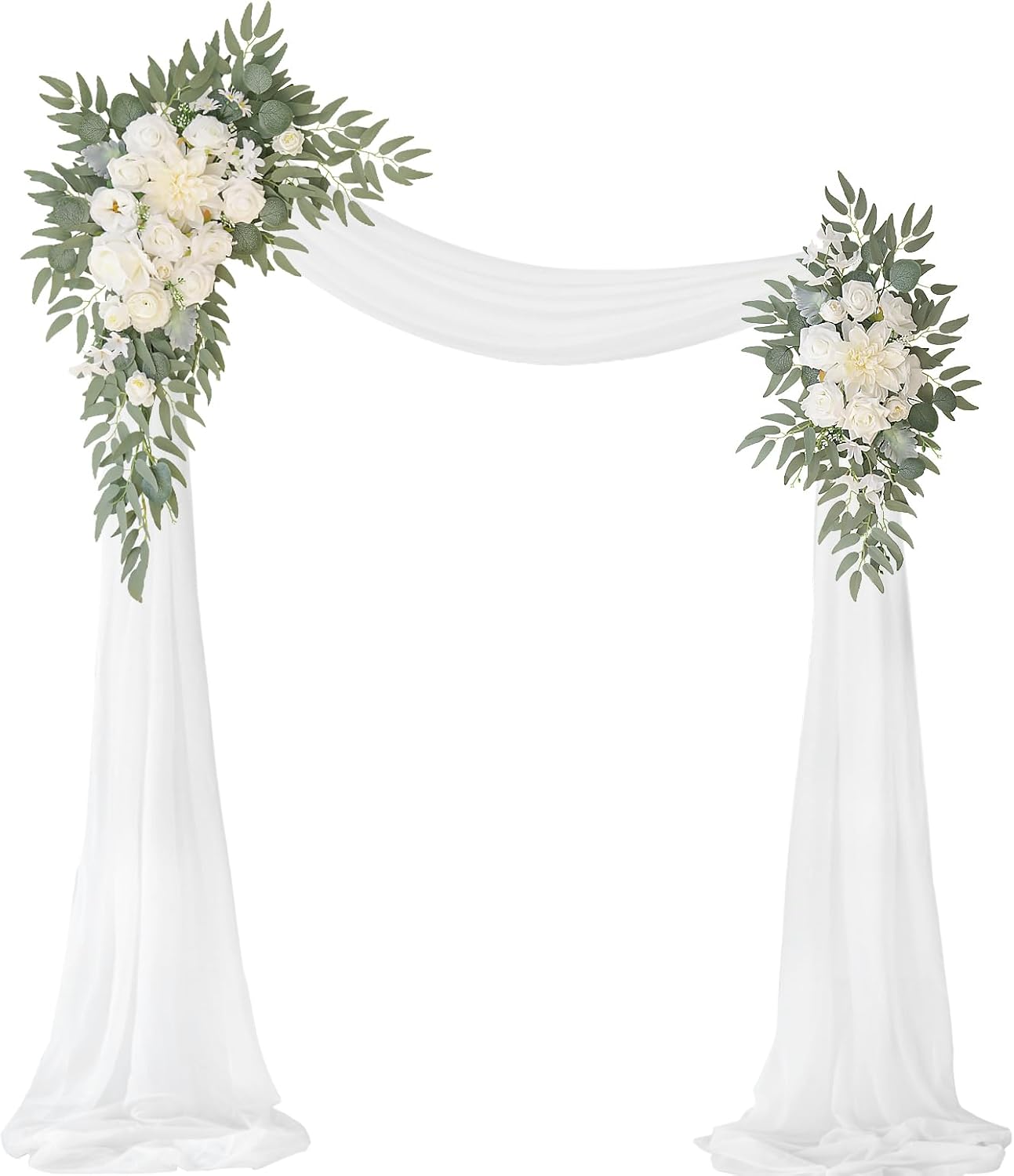 Artificial Wedding Arch Flowers Kit(Pack of 3),2Pcs Artificial Flower Arch Decor,1Pcs Sheer Drape for Wedding Ceremony Arbor for WeddingCeremony (White Rose Wedding)