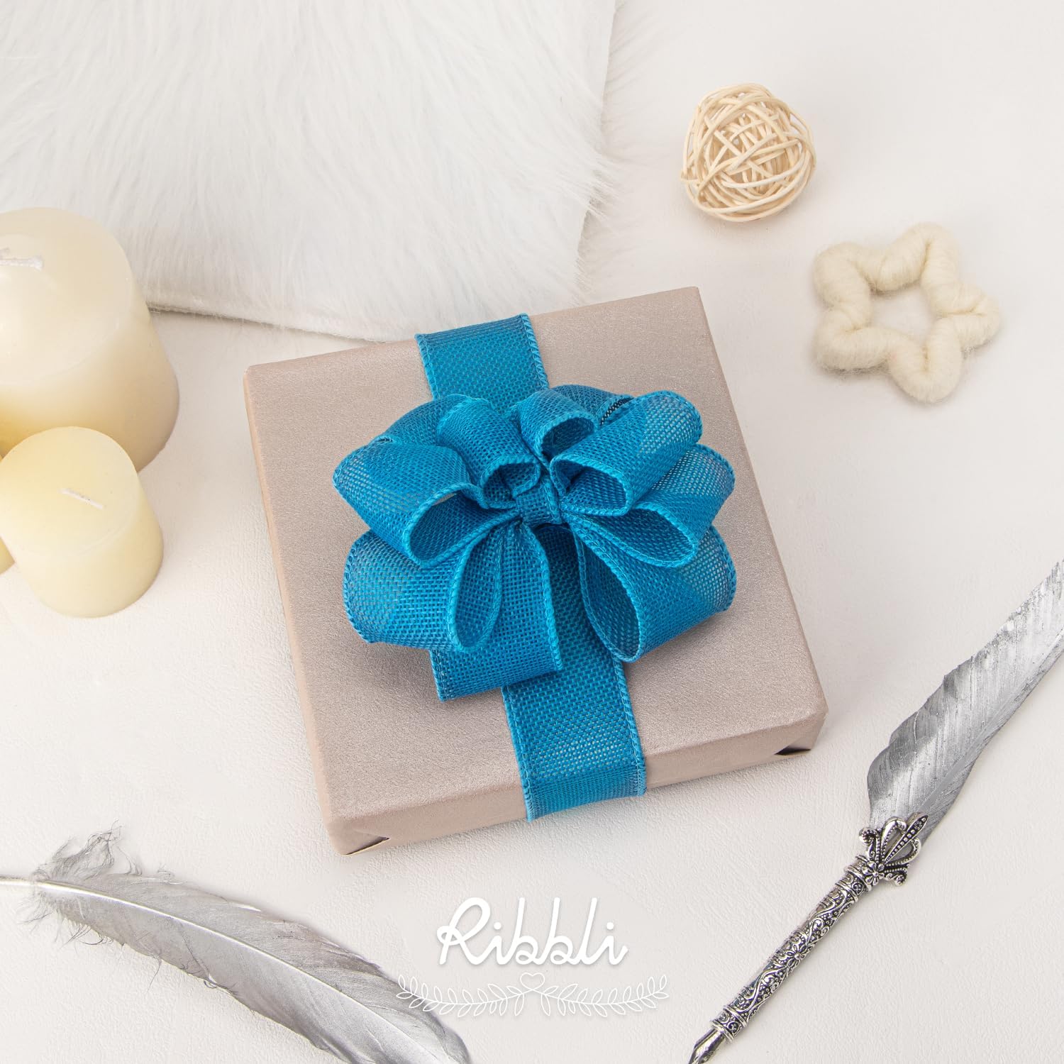 Ribbli Turquoise Blue Burlap Wired Ribbon,1-1/2 Inch x 10 Yard, Wired Edge Ribbon for Big Bow,Wreath,Tree Decoration,Outdoor Decoration