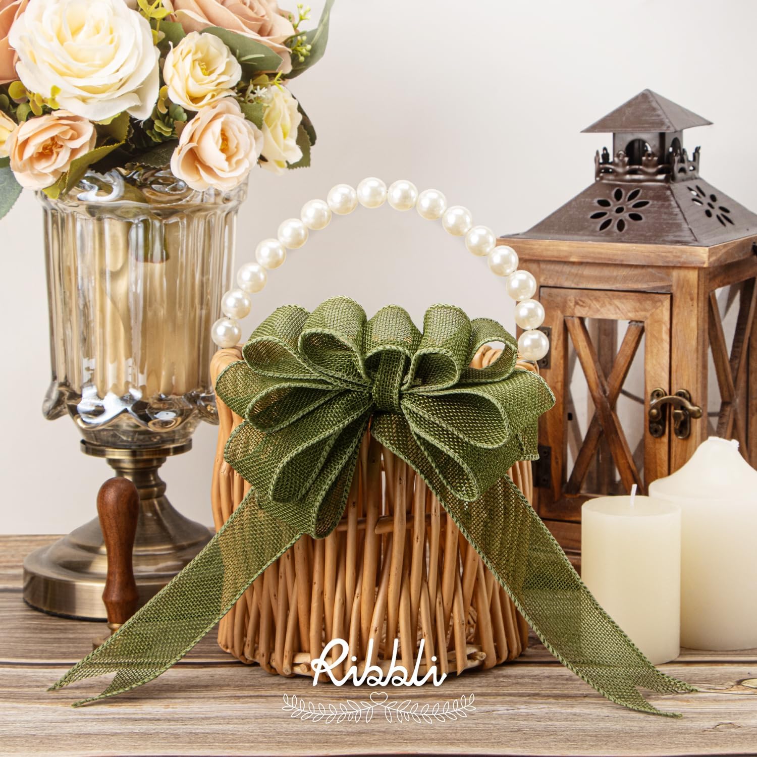 Ribbli Dark Moss Burlap Wired Ribbon,1-1/2 Inch x 10 Yard, Wired Edge Ribbon for Big Bow,Wreath,Tree Decoration,Outdoor Decoration