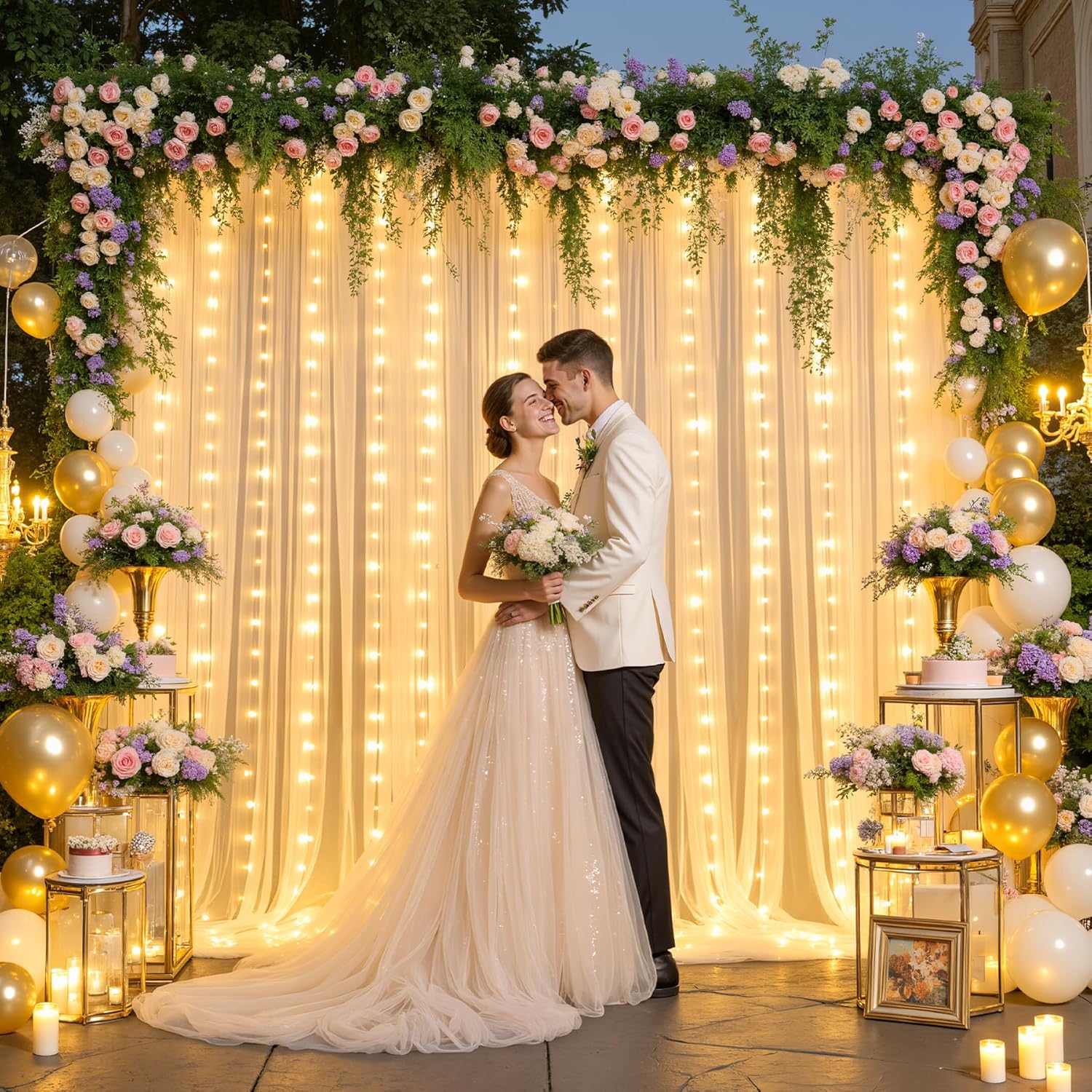 - Champagne Drapes for Backdrop Wide range of use : wedding wall, wedding arch reception, wedding ceremony, photo booth, baby shower, birthday party, gender reveal, bridal shower, valentines day backdrop, baptism, engagement, receptions, photography backdrop, photoshoot, graduation, reception, room decorations, candy buffets, dessert tables background wall, Halloween Party, Christmas window decorations or anywhere you want.