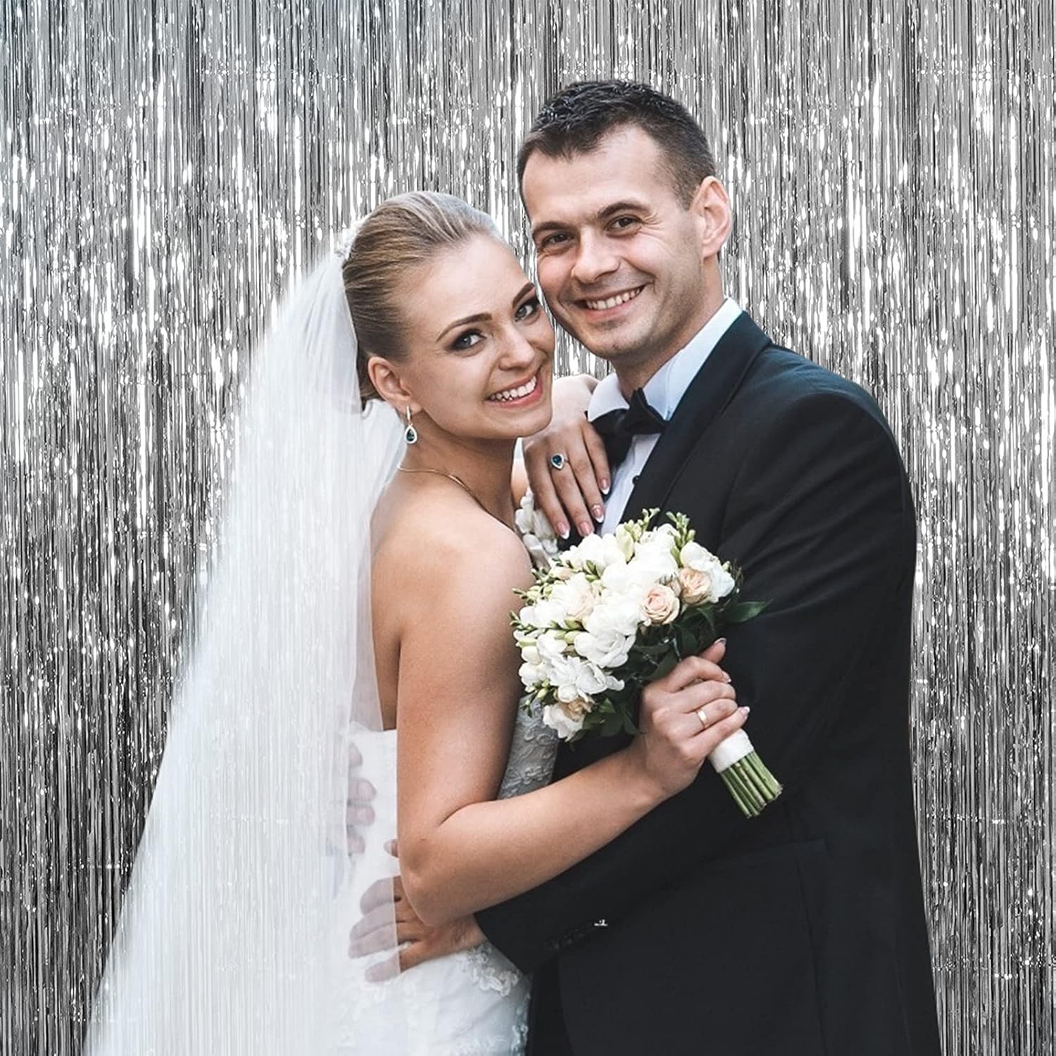 10 Pack Foil Curtain Backdrop Silver Metallic Tinsel Foil Fringe Curtains Photo Booth Props for Birthday Wedding Engagement Baby Shower Bachelorette Christmas Holiday Celebration Party
