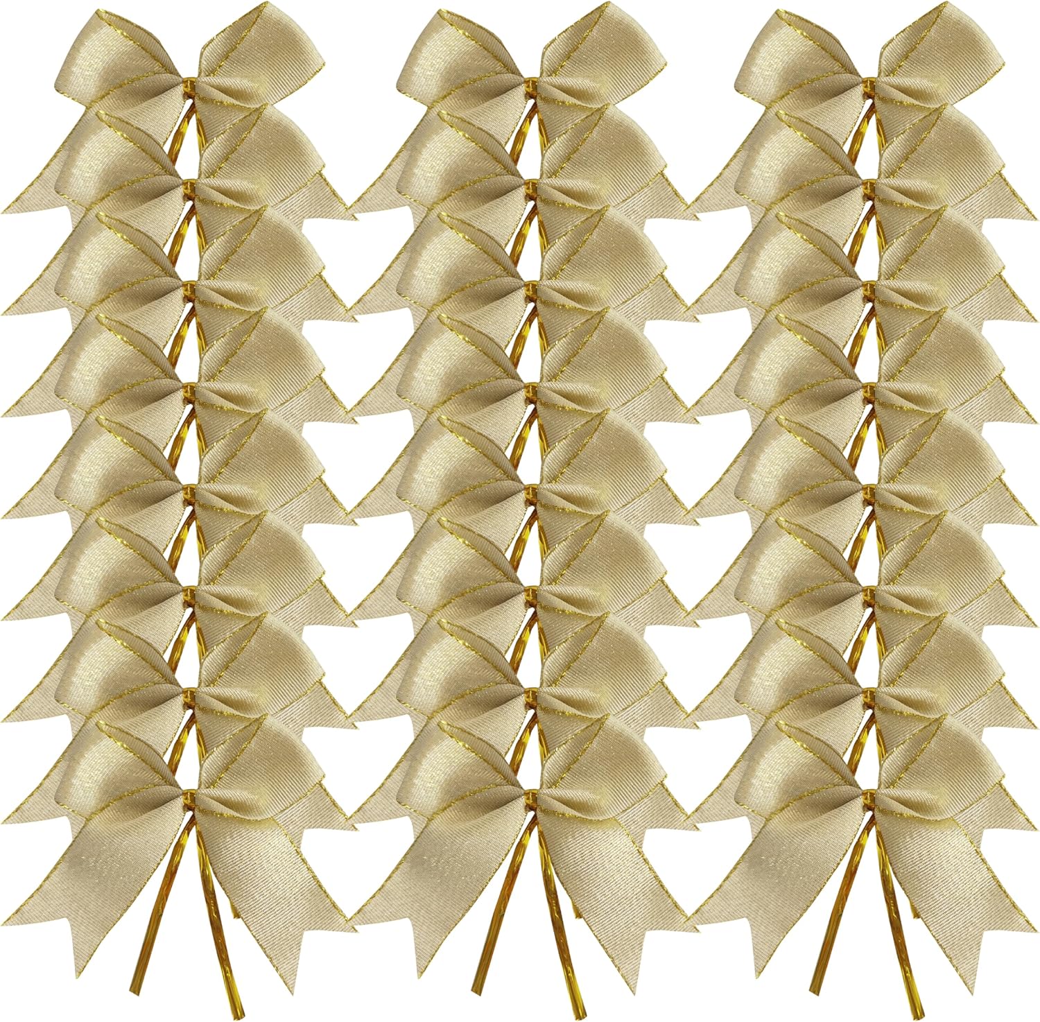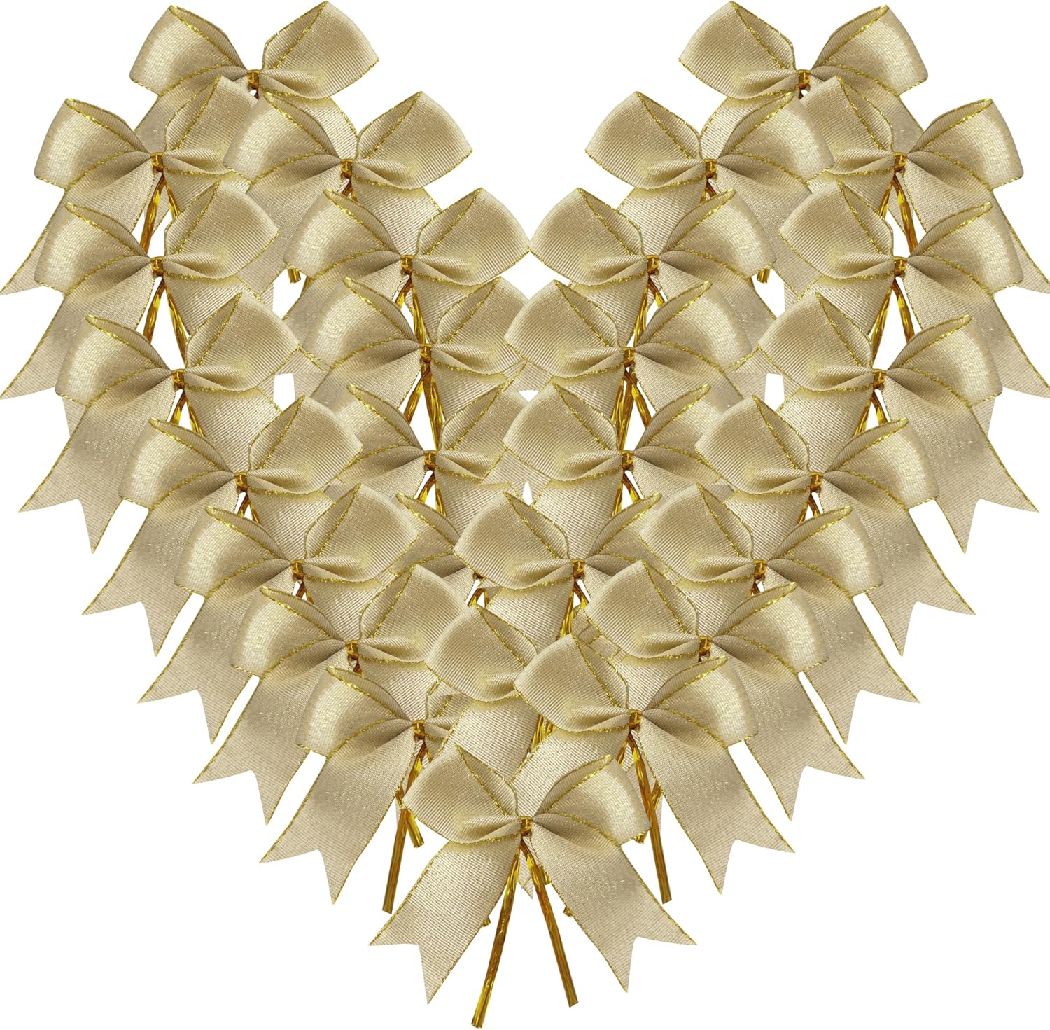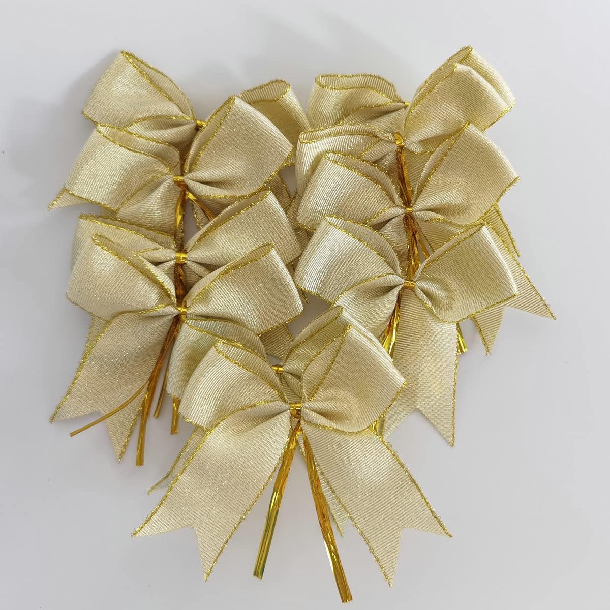 50pcs 3-1/2" White Gold Bows with Twist Ties for Gift Wrapping Packing Christmas Decoration (W.Gold)