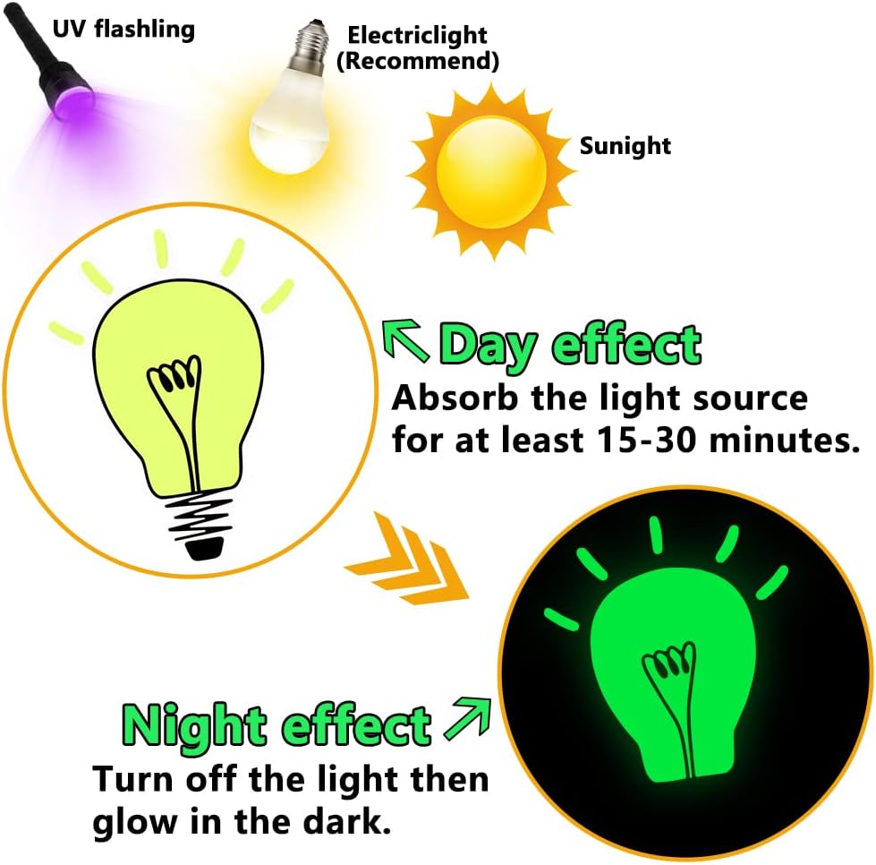 - Stickers for kids-The more time the sticker is under the source of light, the longer it will glow dazzlingly which help children feel secure in the dark.Glow stickers offer the mysterious comfort atmosphere in the room and create a sweet night for your kids.
