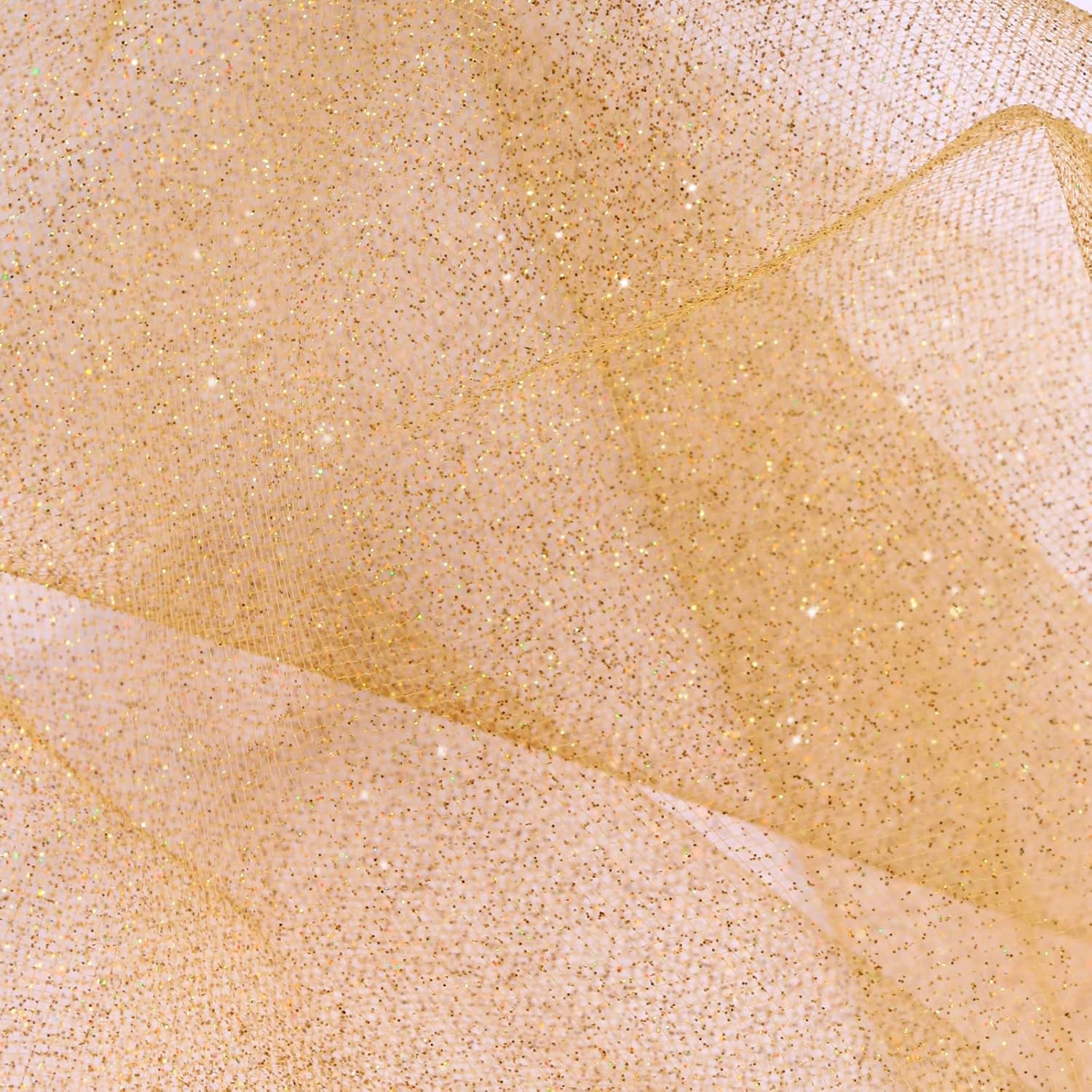 Sparkling Tulle Rolls, 15” by 30 Yards (90FT) Glitter Tulle Spool Ribbon Fabric for Wedding Birthday Bridal Shower Tutu Skirt Party Gift Wrapping (Gold)