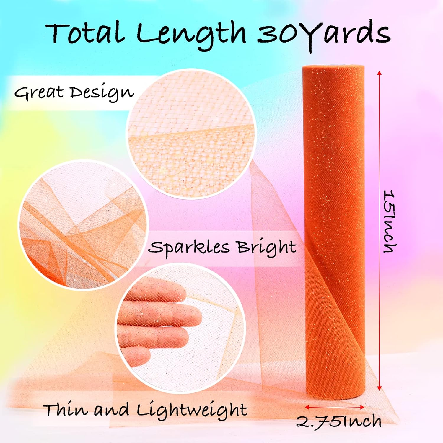 - 15Inch x 30Yards: The tulle roll is a continuous long piece tulle, measures 38cm/15 inches wide, 30 yards/90ft in length. It is more shiny and durable than another tulle. Moderate hardness, colorful and fashionable.