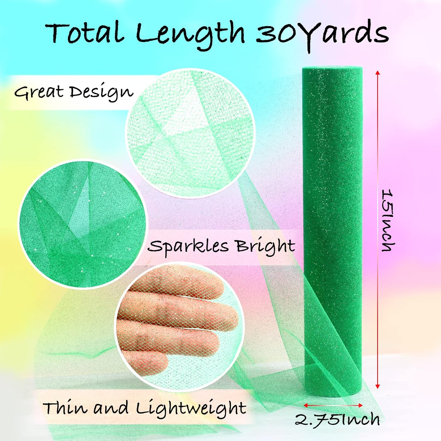 - 15Inch x 30Yards: The tulle roll is a continuous long piece tulle, measures 38cm/15 inches wide, 30 yards/90ft in length. It is more shiny and durable than another tulle. Moderate hardness, colorful and fashionable.