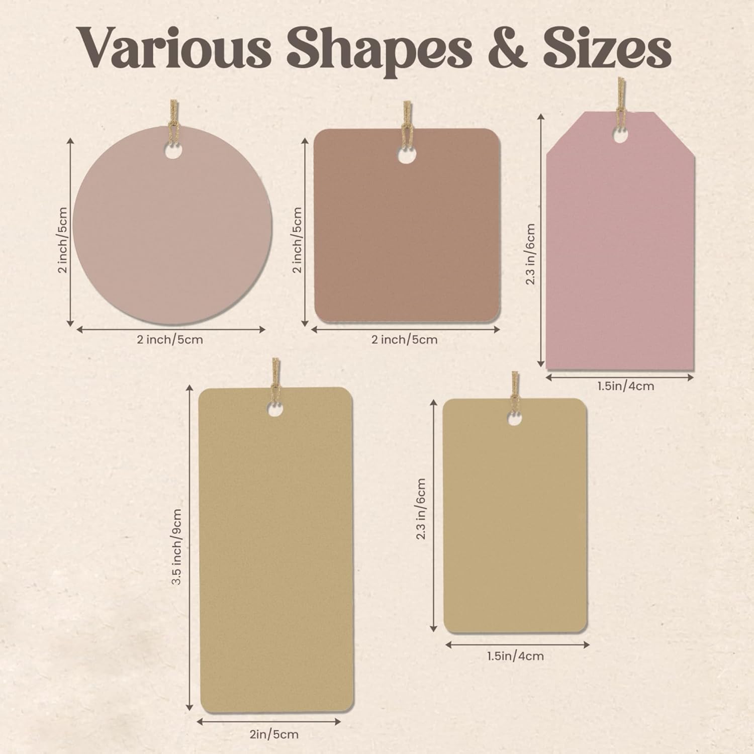 - Customizable Tags for Every Need: Dive into a world of possibilities with our custom tags, ideal for handmade creations, clothing, and jewelry. Shape your identity and project your brand's unique style with our extensive range of customizable shapes and backgrounds.