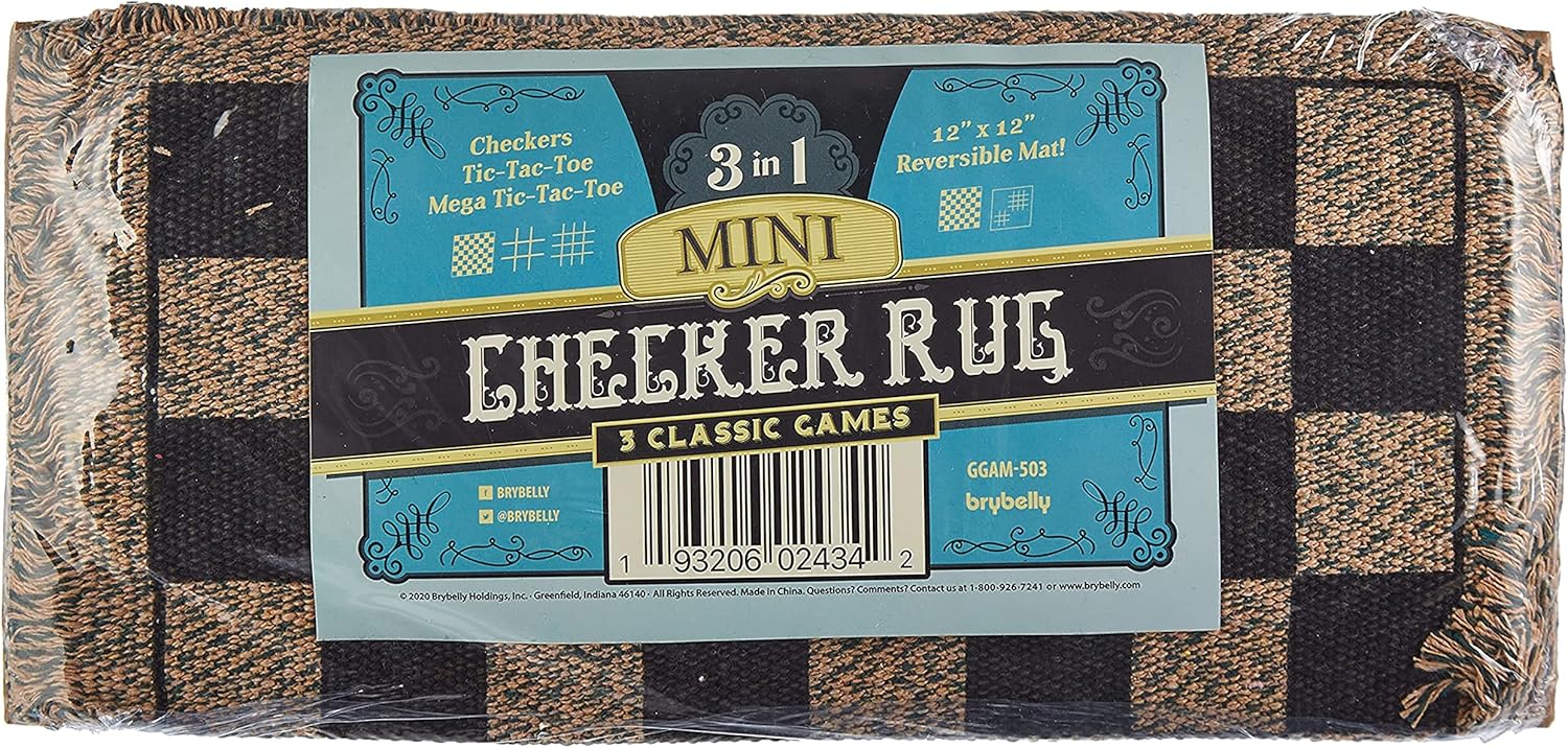 3-in-1 Mini Checkers Rug + Classic & Mega Tic Tac Toe - Portable Compact 12" x 12" Reversible Checkerboard Rug - Travel, Parties, Games on The Go, Family Board Game Night
