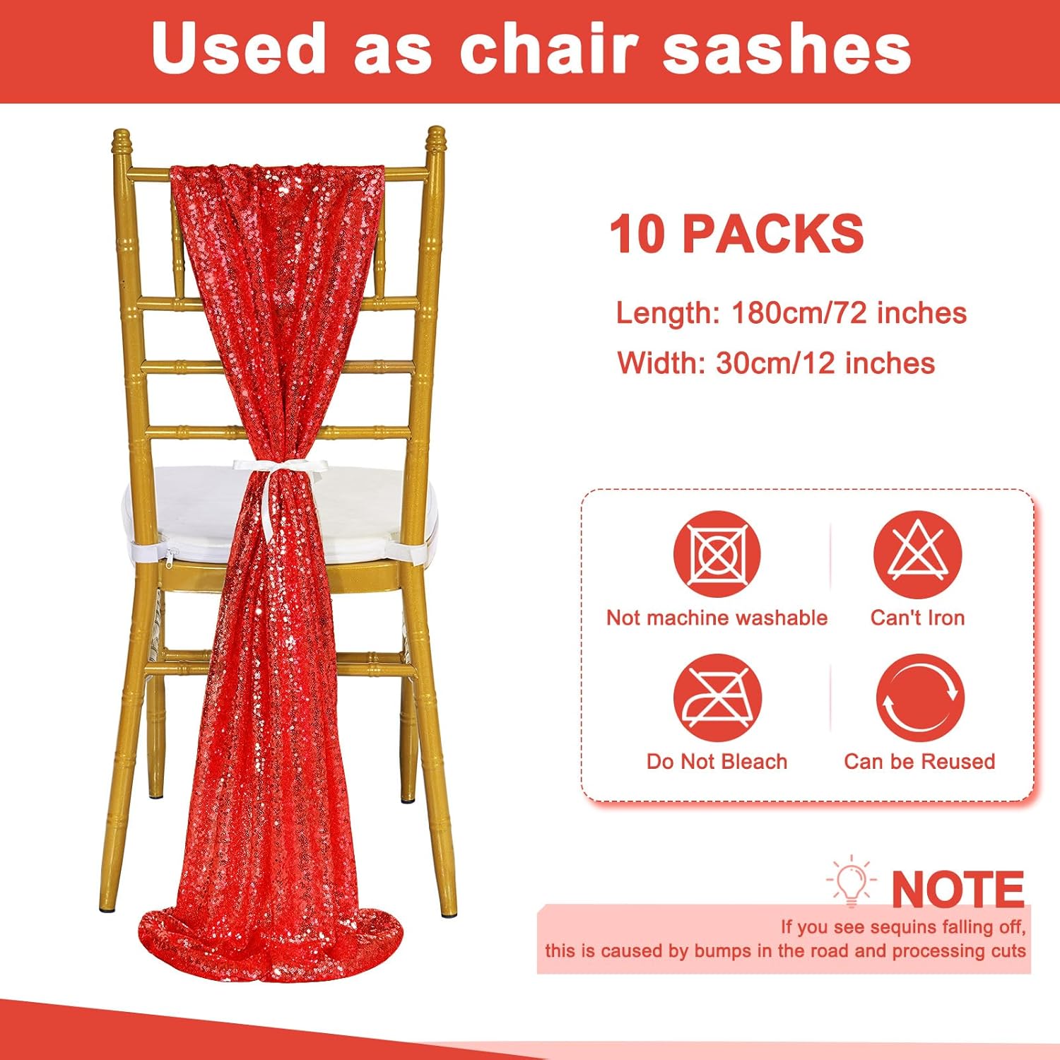 - Table Runners for Party: The high quantity of 10 pack meets all grand party banquet needs. A versatile color can be used for weddings, birthday parties, banquet, home dรฉcor or any type of event or occasion. This practical sequin table runner can be tied in a bow and used as chair cover sashes or ornaments.