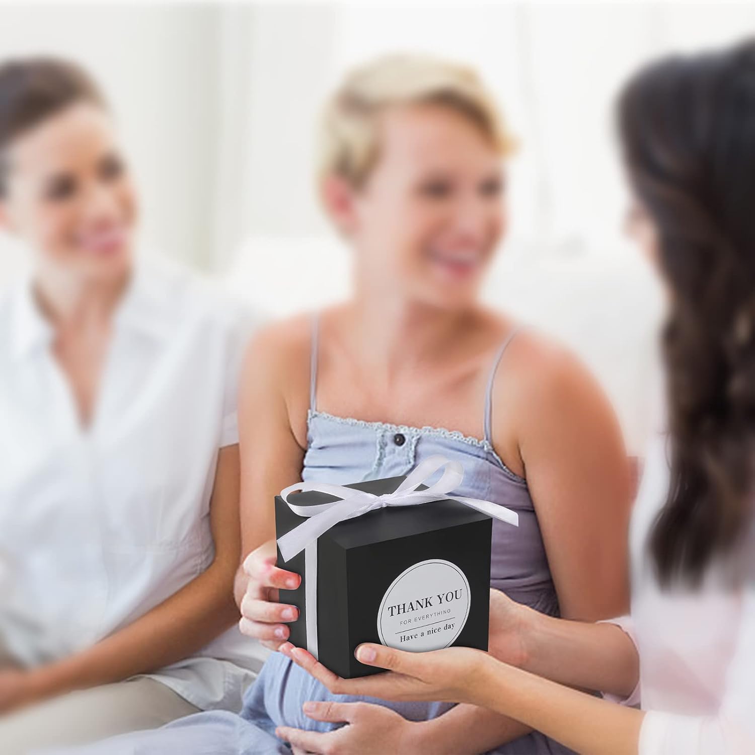 - What You'll Get: 100pcs Black favor boxes,100pcs white ribbons and 100pcs Thank you stickers. you can tie a bow knot on top, which will be more elegant and romantic for party.