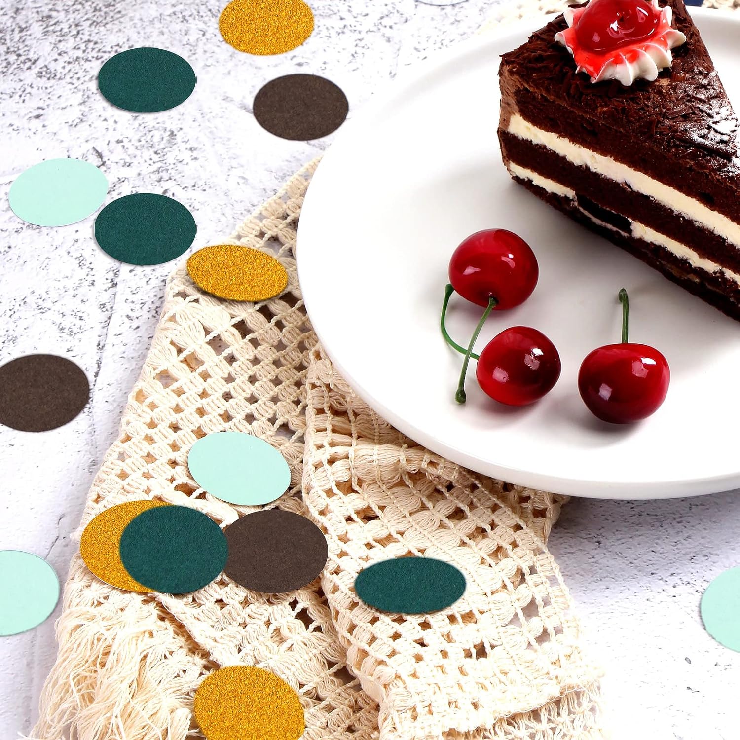 Sage-Green Gold Brown Party Decorations - 300pcs Confetti Paper Dot Table Decor for Gender Neutral Baby Shower Decoration,Bridal Shower,Birthday with Rustic,Boho,Woodland Theme