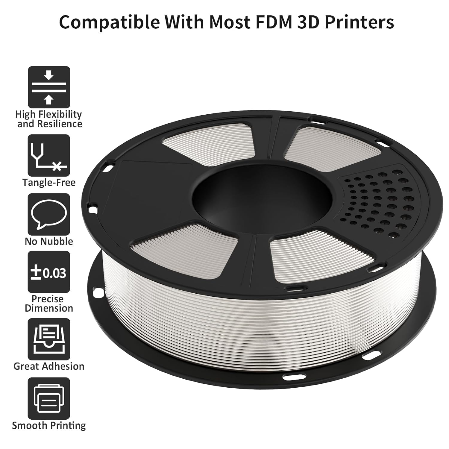 GIANTARM 3D Printer Filament, Silk White Pla Filament, 1Kg(2.2lbs) Spool, 1.75mm Dimension Accuracy +/- 0.03mm, 3D Printing Filament