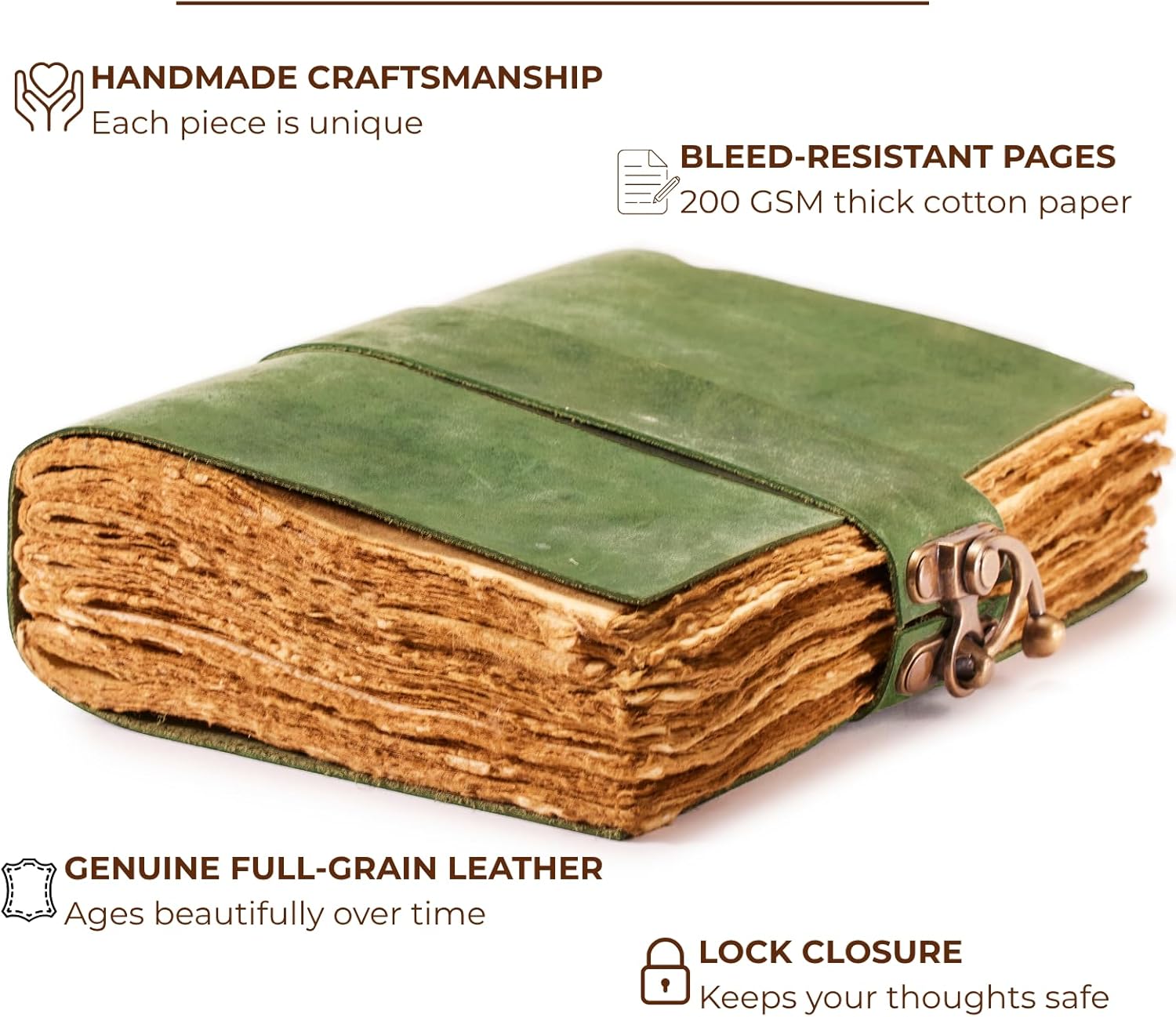 - VINTAGE LOCK AND STURDY BINDING - The vintage lock will keep all your valuable writing locked inside.Sturdy hand stitched binding to make sure that no paper comes out loose from your vintage notebook.