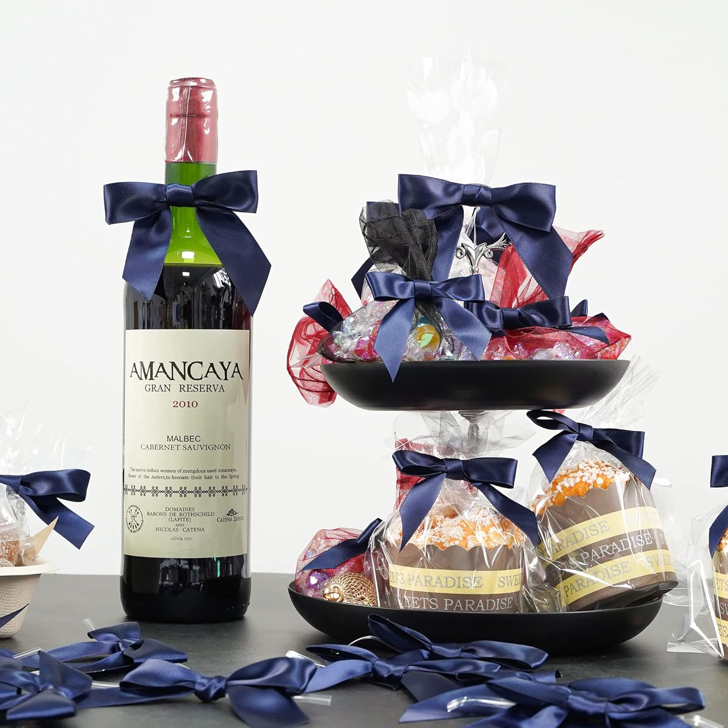 - [ Package Content ] You will receive 50 pieces navy blue satin bows with twist ties. Saving time from having to make the bows yourself.