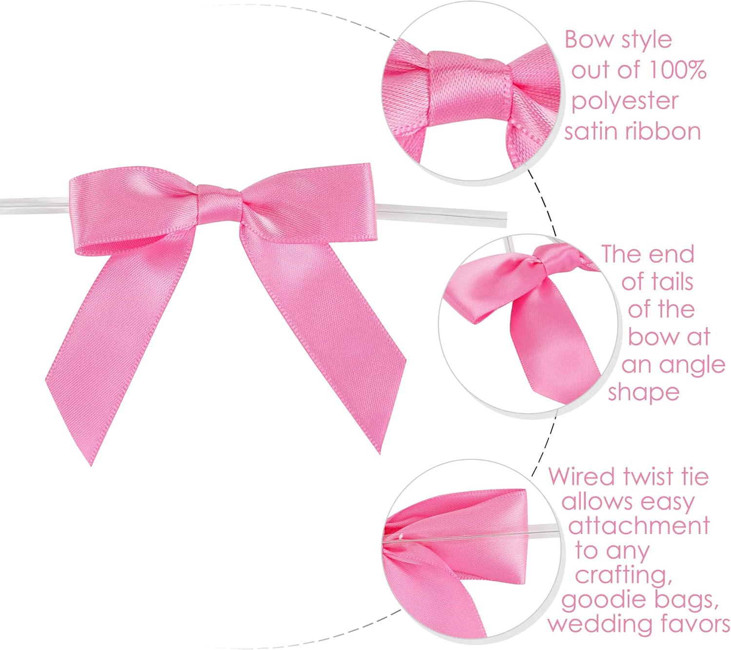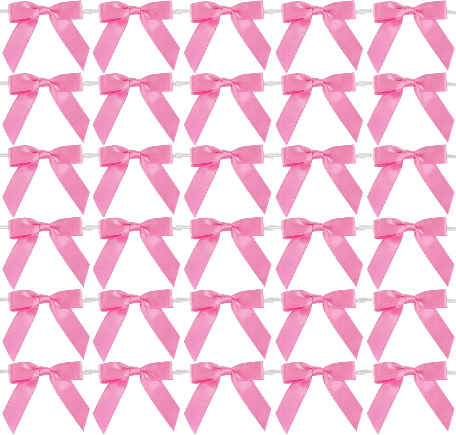 - [ Package Content ] You will receive 50 pieces hot pink satin bows with twist ties. Saving time from having to make the bows yourself.