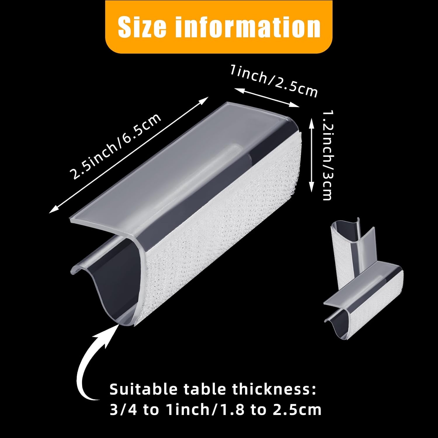 - Convenient to use: install the landscape tablecloth clip on the edge of the table, put the flat part at the bottom of the table, stretch the curved part until the edge of the table is buckled, it is very convenient to use; Flexibility to accommodate different table thicknesses from 3/4 inch to 1 inch invisible, keep your tablecloth clean