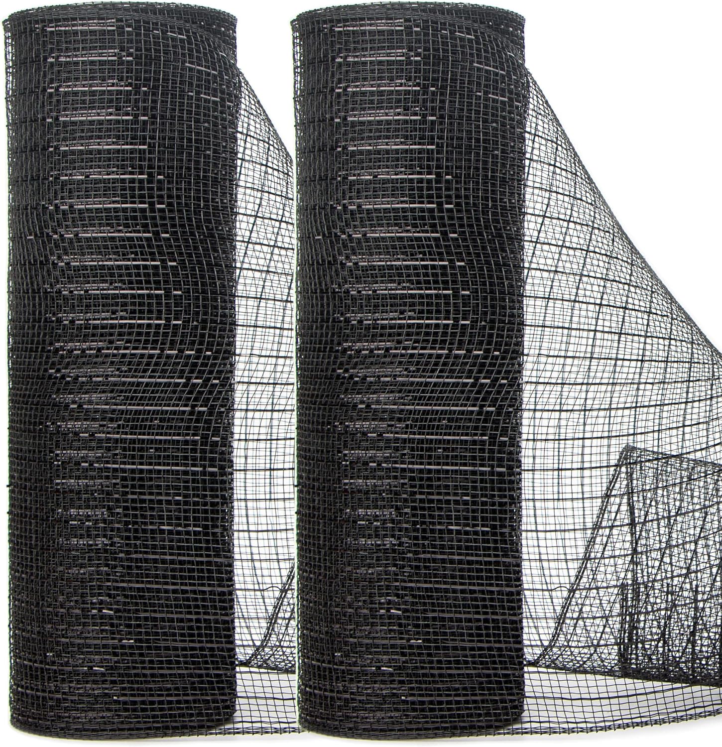 Ribbli 2 Rolls Black Mesh Ribbon,10 inch x 30 feet(10Yard) Each Roll,Metallic Black with Foil,Halloween Ribbon for Wreath Swags and Decorating