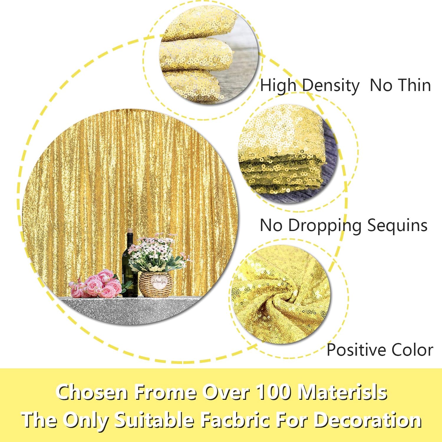 - Durable Material: Gold sequin backdrop with 3MM round dense sequins on mesh fabric. Finished edges prevent fraying, ensuring sequins stay intact and reusable;