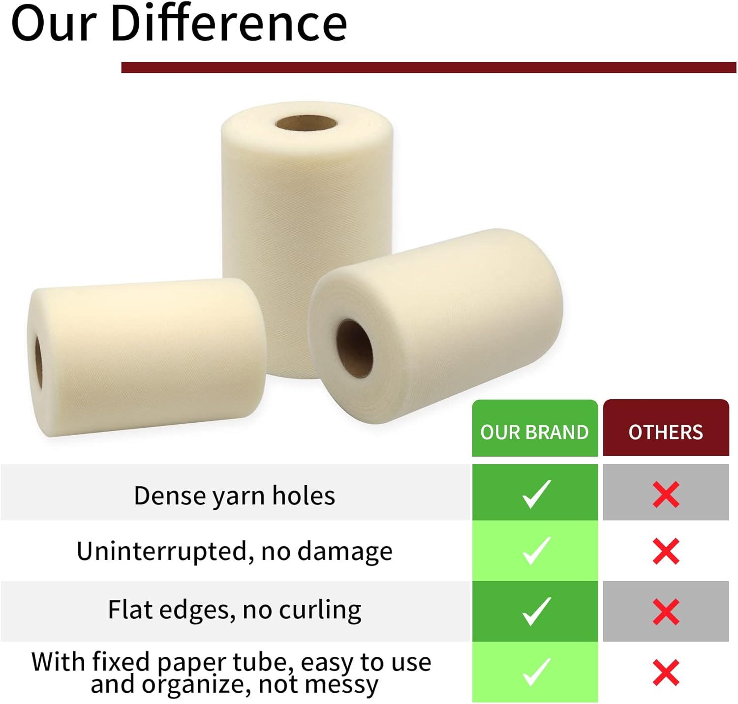 - Each tulle fabric spool measures 6 inch x 100 yards (300 feet), sufficient length, continuous and uninterrupted.