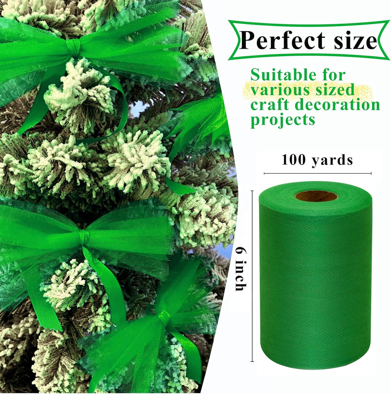 Emerald Green Tulle Fabric Rolls 6 Inch by 100 Yards (300 feet) Fabric Spool Tulle Ribbon for DIY Tutu Christmas Gift Wrapping Bow Baby Shower Birthday Party Wedding Decorations Craft Supplies
