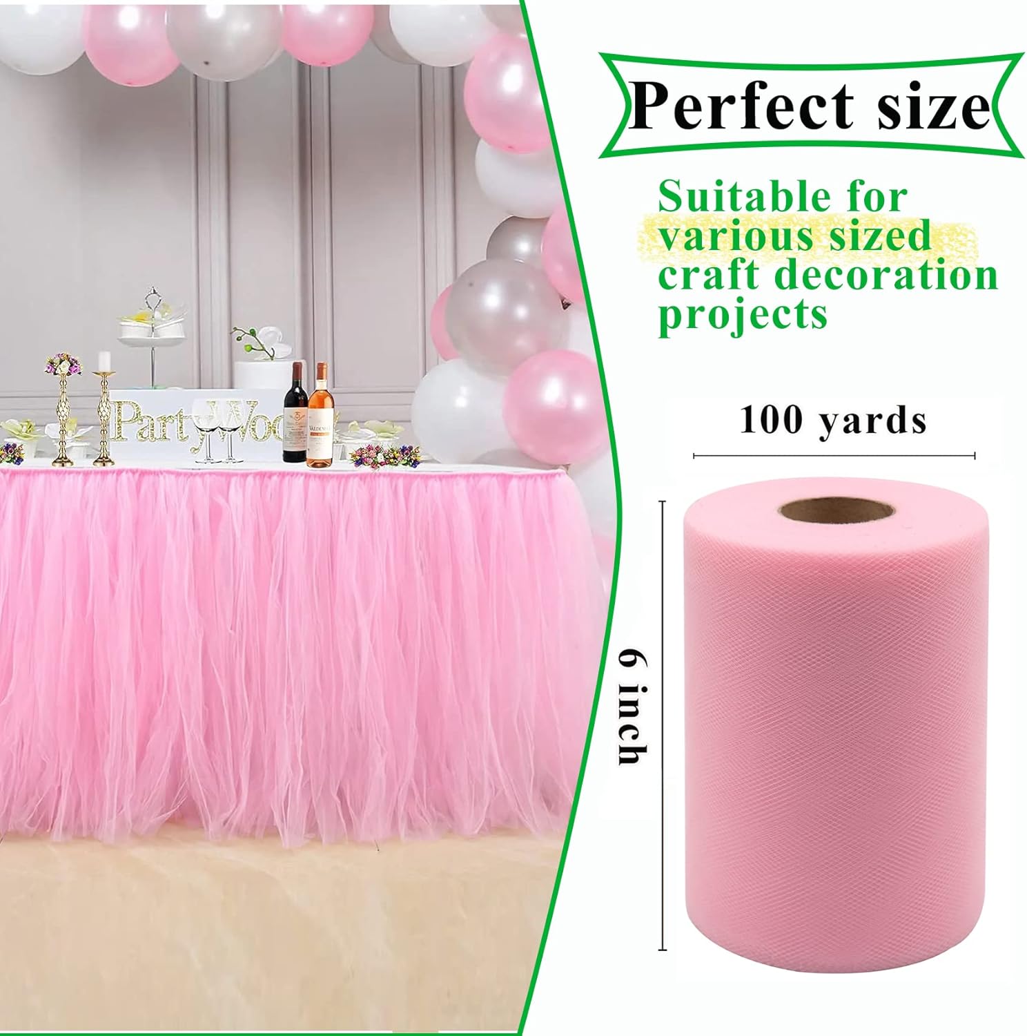 Pink Tulle Fabric Rolls 6 Inch by 100 Yards (300 feet) Fabric Spool Tulle Ribbon for DIY Pink Tutu Bow Baby Shower Birthday Party Wedding Decorations Christmas Craft Supplies