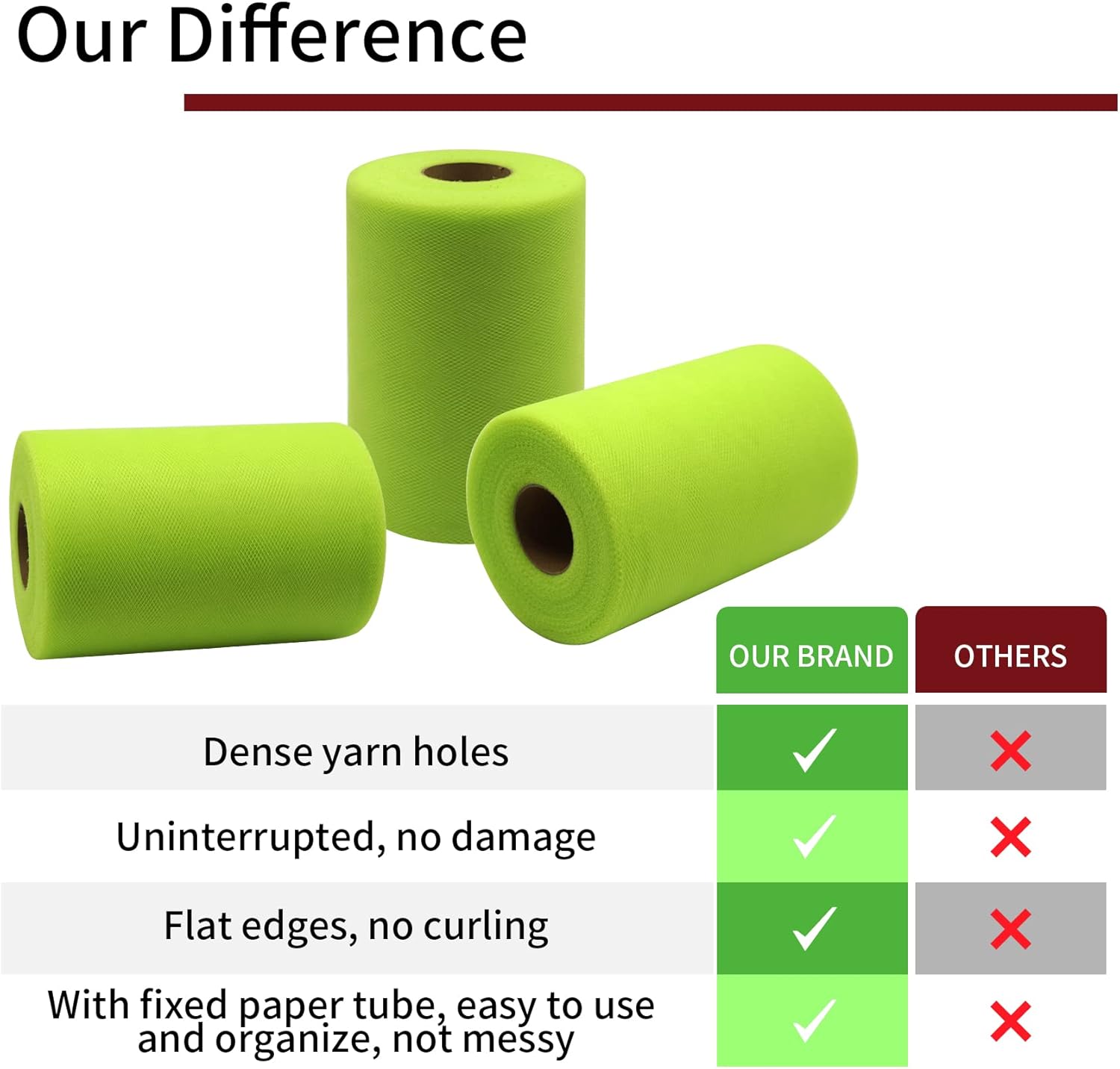 - Each tulle fabric spool measures 6 inch x 100 yards (300 feet), sufficient length, continuous and uninterrupted.