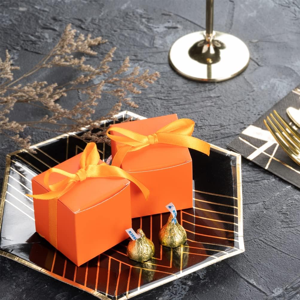 AWELL Orange Gift Candy Box Bulk 2x2x2 inches with Orange Ribbon Party Favor Box for Graduation Halloween Party,Pack of 50