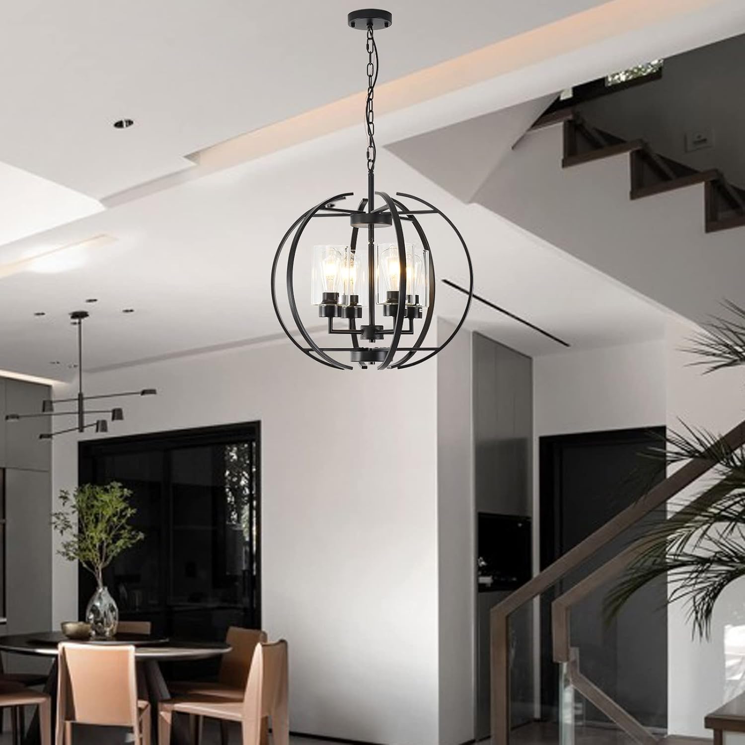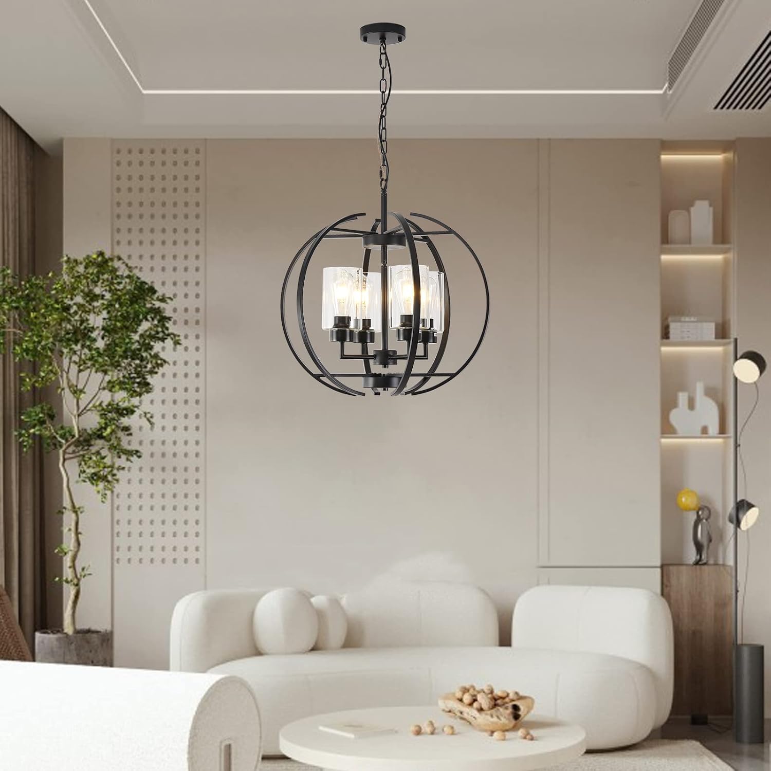 Black Chandelier Lighting with Clear Glass for Dining Room, Farmhouse Hanging Lighting, 4 Lights Globe Ceiling Light Fixture