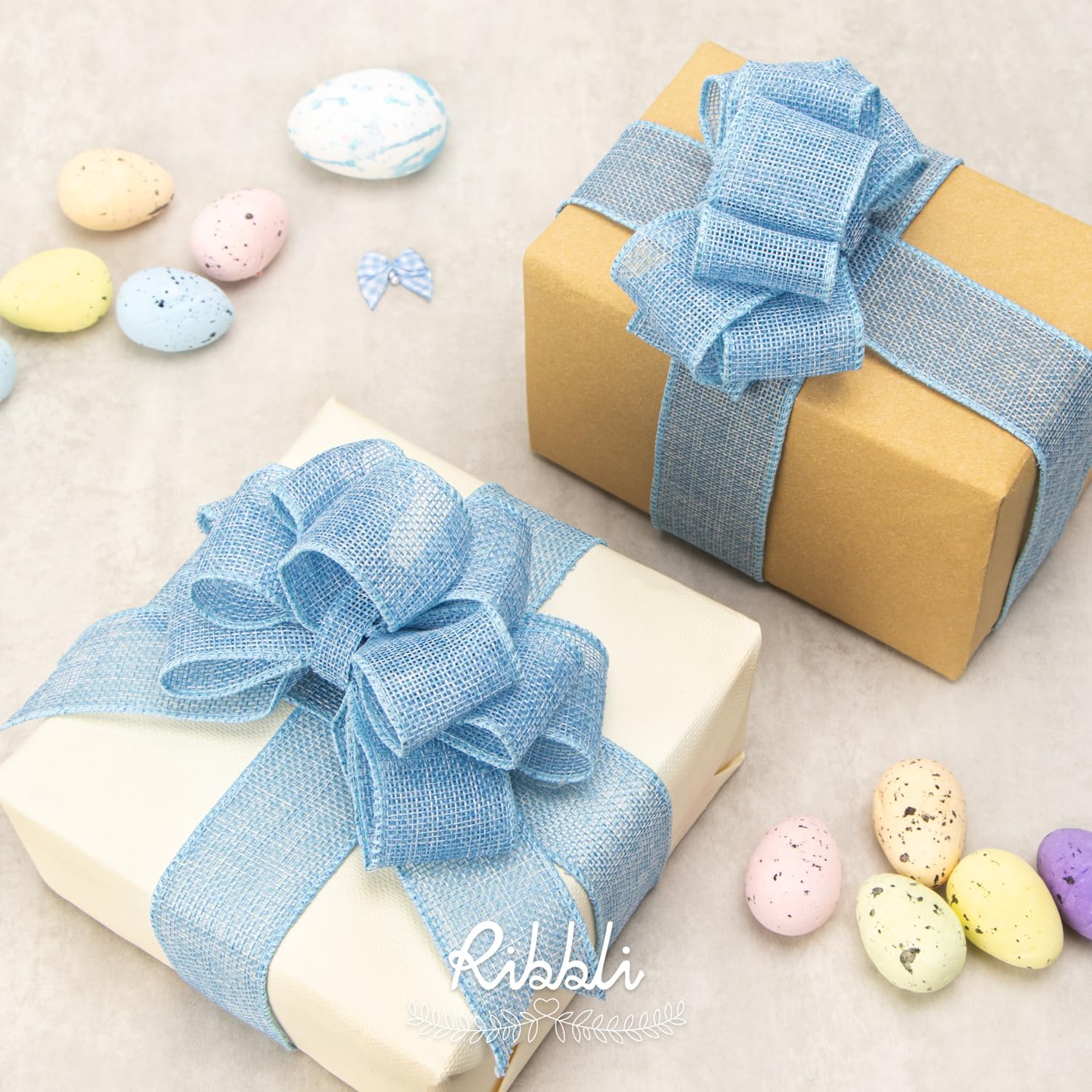 Ribbli Baby Blue Burlap Wired Ribbon,1-1/2” Inch x Continuous 10 Yard, Wired Edge Ribbon for Big Bow,Wreath,Baby Shower Decoration,Outdoor Decoration