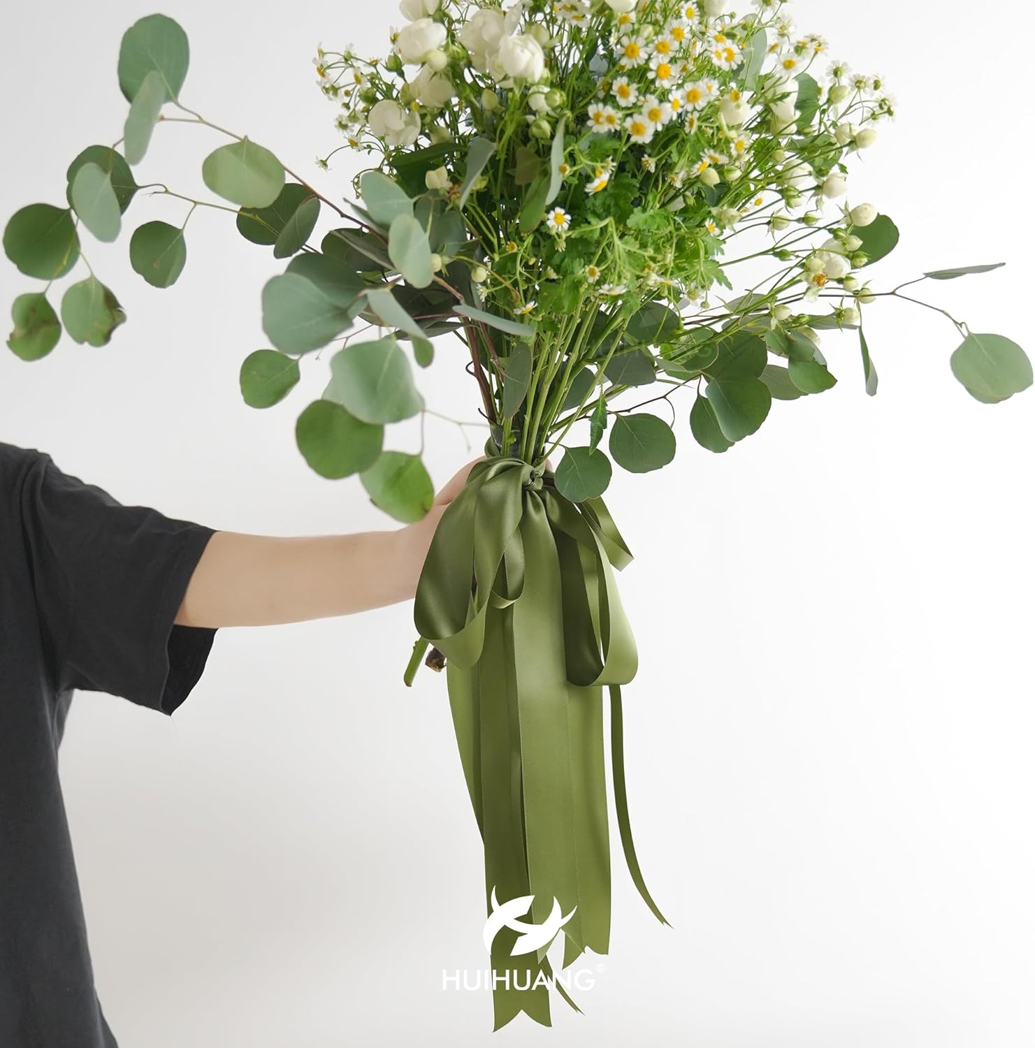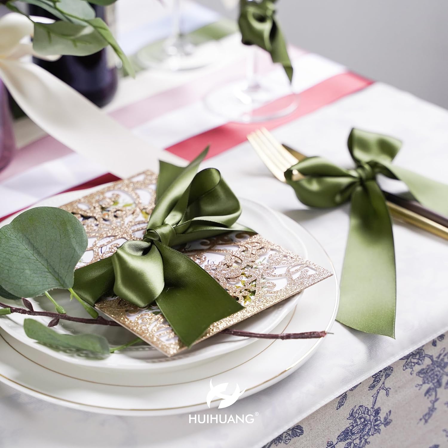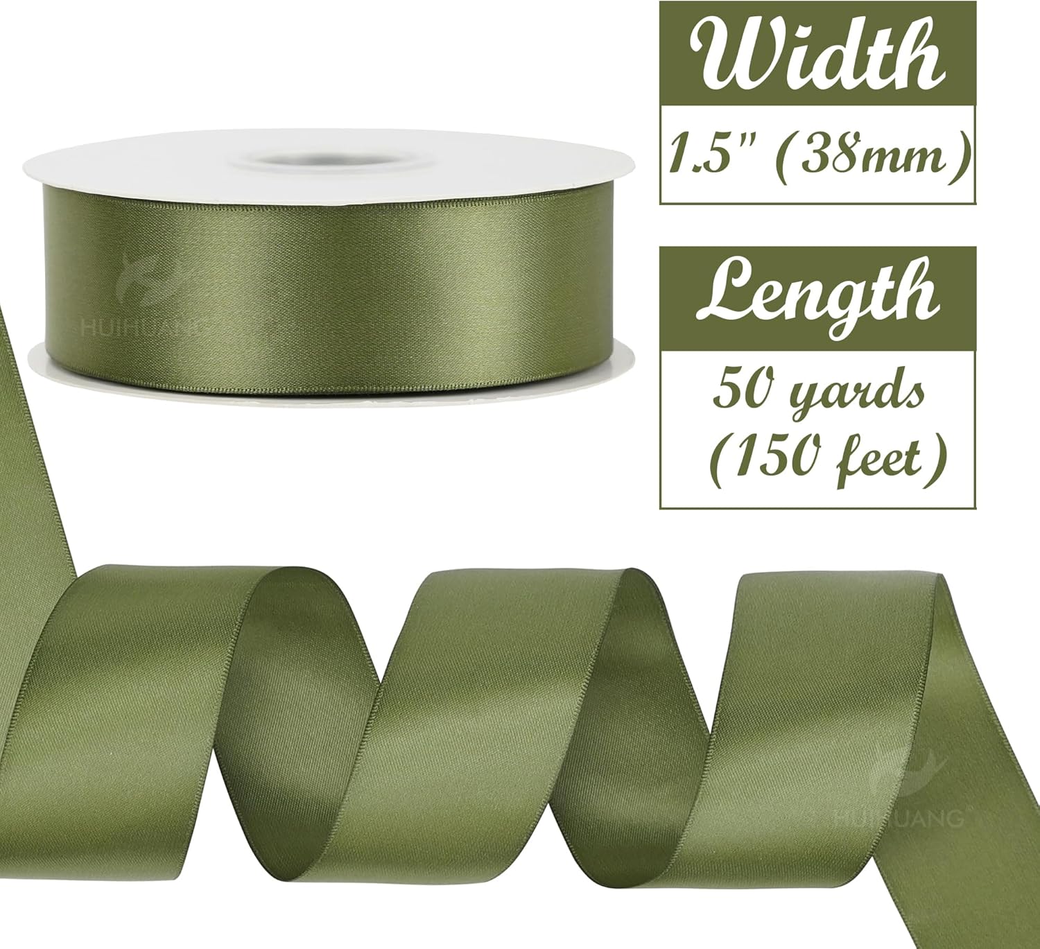HUIHUANG 1-1/2 inch Double Face Satin Ribbon, Polyester Moss Green Ribbon 50 Yards Per Roll for Gift Wrapping Bows Making Floral Bouquet Wedding Invitations Decor Party Favor and Craft Supplies