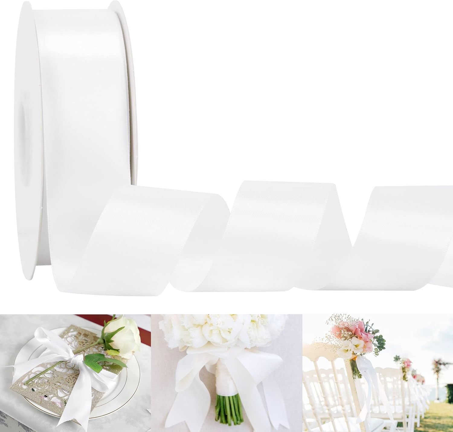 HUIHUANG White Satin Ribbon 1-1/2 inch Double Face Satin Ribbon Christmas Gift Wrapping Ribbons for Crafts Gifts Bows Making Floral Bouquet Wedding Invitations Decor Party Favor and Craft Supplies