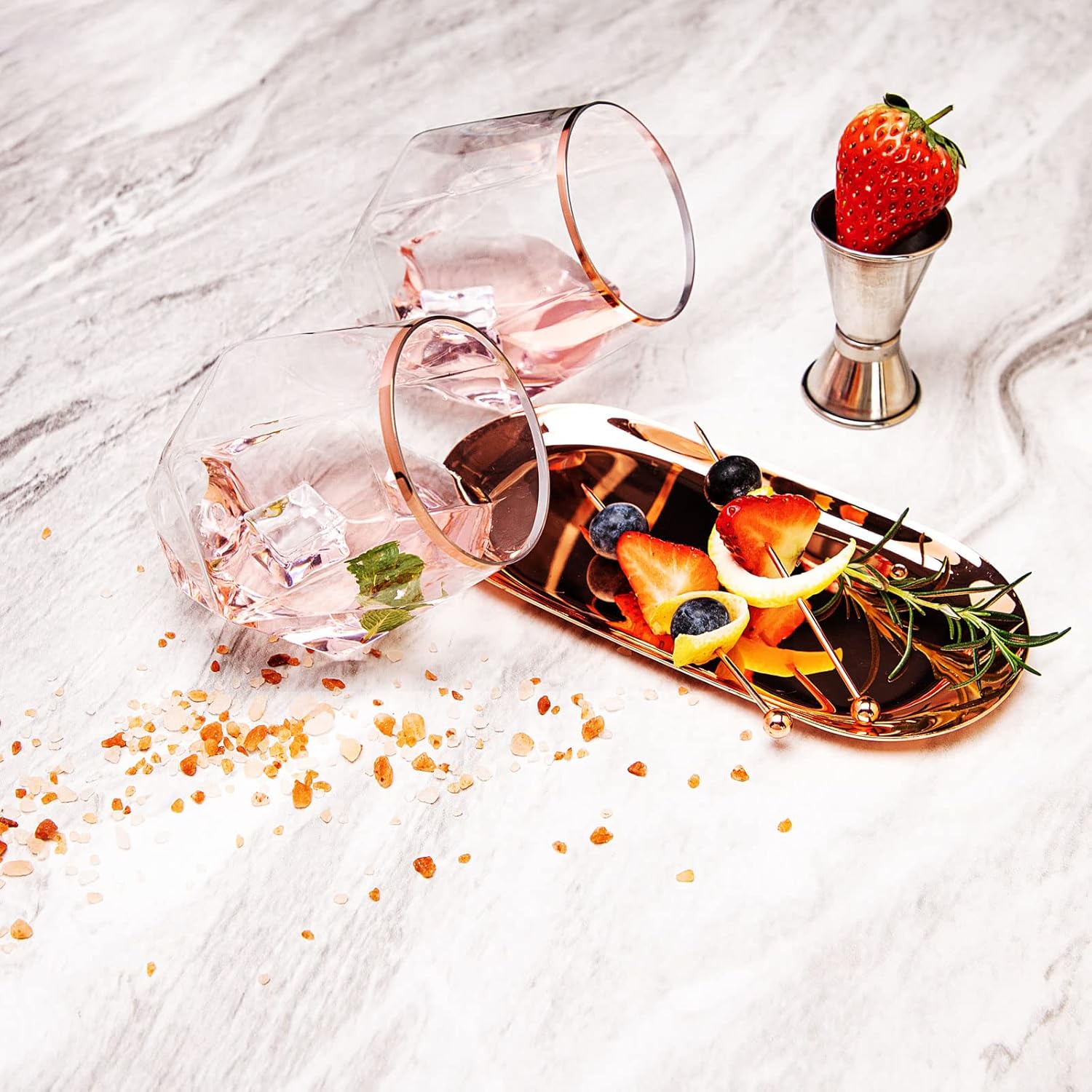 - STURDY & HEALTHY: These clear plastic wine glasses with rose gold rim are made of high-strength plastic that are strong and durable. Non-toxic and harmless materials without BPA, let you rest assured use clear plastic whiskey glasses.