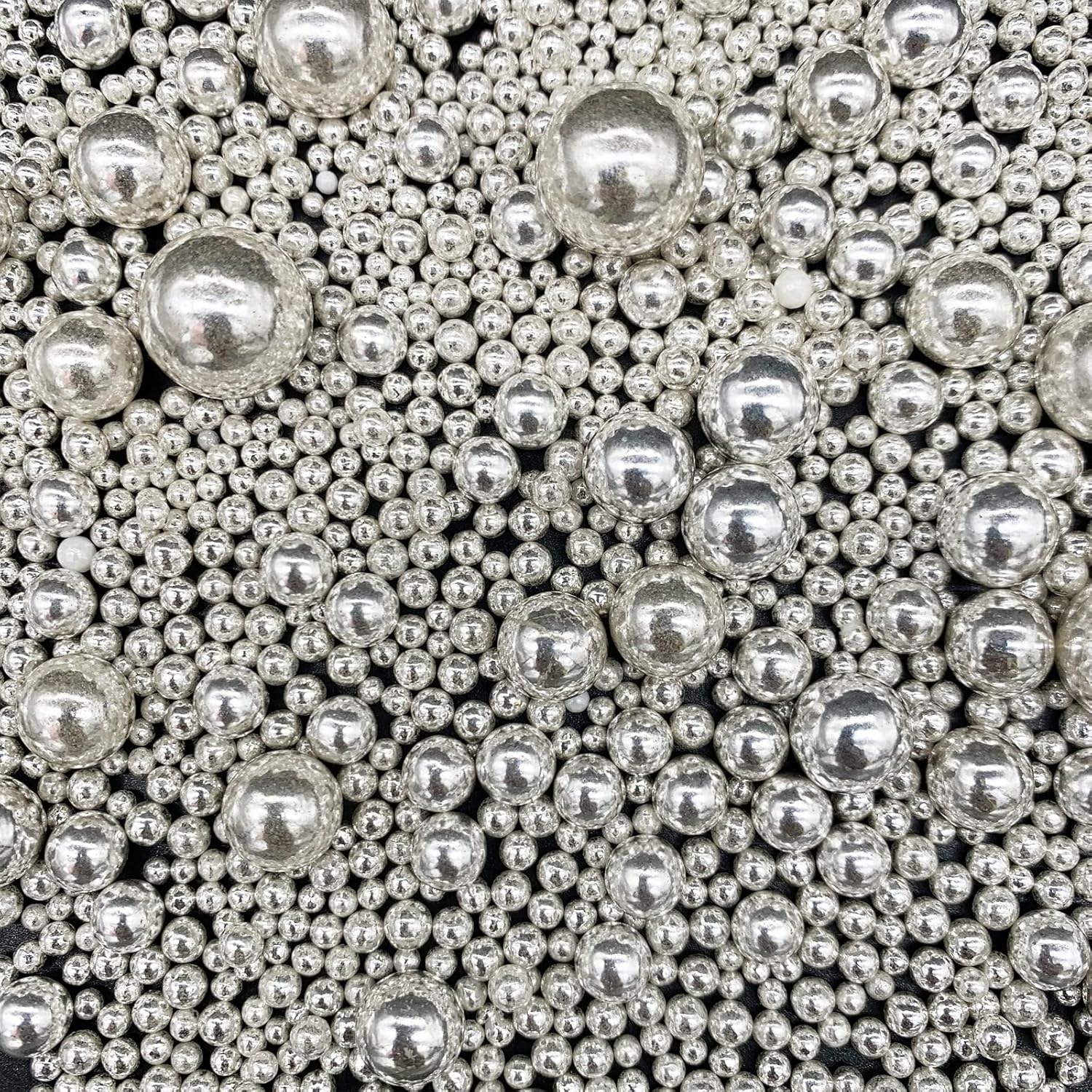 Weraru Edible Silver Pearl Sugar Sprinkles Candy Mixing Size Baking Edible Cake Decorations Cupcake Toppers Cookie Decorating Celebrations Wedding Shower Party Chirstmas Supplies 120g/ 4.2oz